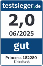 Die Nachfrage nach Heißluftfritteusen ist in den letzten Jahren stark gestiegen. Immer mehr Menschen möchten auf eine fettärmere Zubereitung ihrer Lieblingsspeisen setzen, ohne dabei auf Geschmack oder Konsistenz zu verzichten. Mit der Princess 182280 bringt der Hersteller ein Modell auf den Markt, das sich vor allem durch sein enormes Fassungsvermögen von 8 Litern auszeichnet. Doch kann die große Fritteuse auch im Alltag überzeugen?