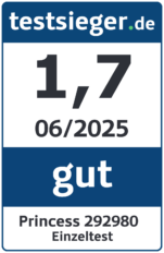 Mit einem Preis von 39,99 Euro bewegt sich das Gerät im unteren Preisbereich. Verglichen mit dem günstigeren Vorgängermodell Princess 29286 (UVP 34,95 €), das im Test besser abschneidet, bietet die neue Version dennoch interessante Vorteile – vor allem bei Komfortfunktionen wie der Servierschale.