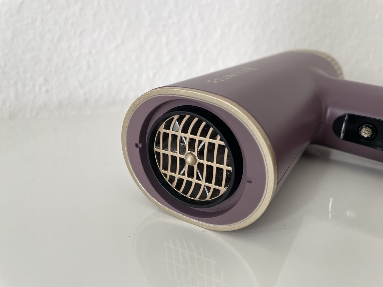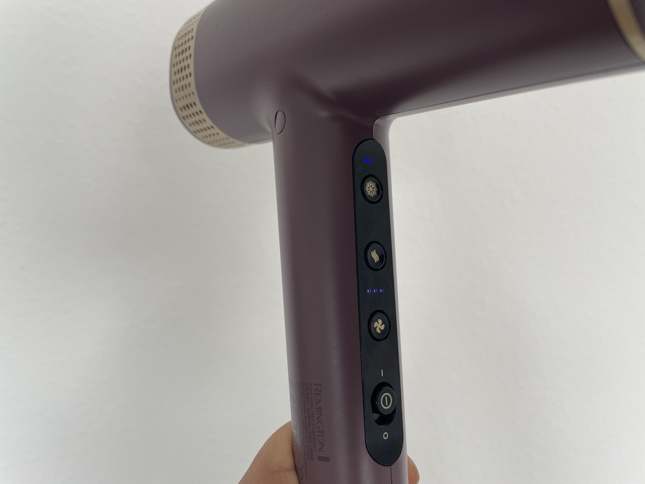 In puncto Aufsätze liefert Remington einen Diffusor und eine Styling-Düse mit. Beide kann man per Magnet sicher am Gerät befestigen; die Düse lässt sich dabei trotz Magnetbefestigung frei in die gewünschte Richtung ausrichten. Ein abnehmbarer Filter rundet die Ausstattung ab. Ionen-Funktion (Ionic Air) zur Frizz-Reduzierung und eine LED-Anzeige sind ebenfalls vorhanden.