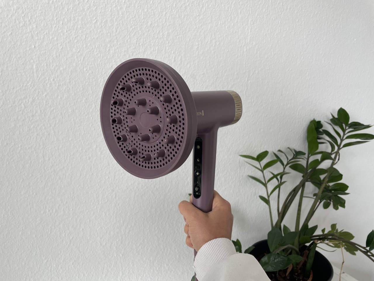Wir testen 2 Styles: Locken mit dem Diffusor sowie das Föhnen mit der Styling-Düse bei regulärem Luftstrom. Beide Aufsätze liefern überzeugende Ergebnisse. Die Lockenhaltbarkeit nach dem Diffusor-Einsatz ist stark. Die Form bleibt mehrere Stunden stabil, ohne nennenswert nachzulassen.
