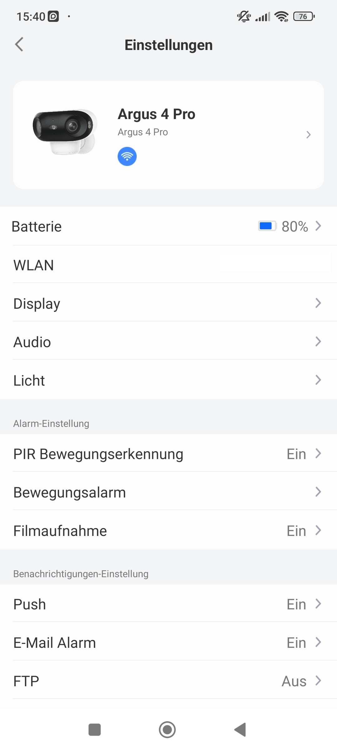 Die Smarthome-Funktionen sind recht begrenzt. Wer den Reolink Home Hub besitzt, kann Aufnahmen auch im hauseigenen Netzwerk ablegen. Zudem unterstützt die Argus 4 Pro den Google Assistant und lässt sich in das Google-Home-System integrieren. Das war es dann aber auch schon, hier unterstützen andere smarte Überwachungskameras mehr Anbieter und weitere Funktionen.