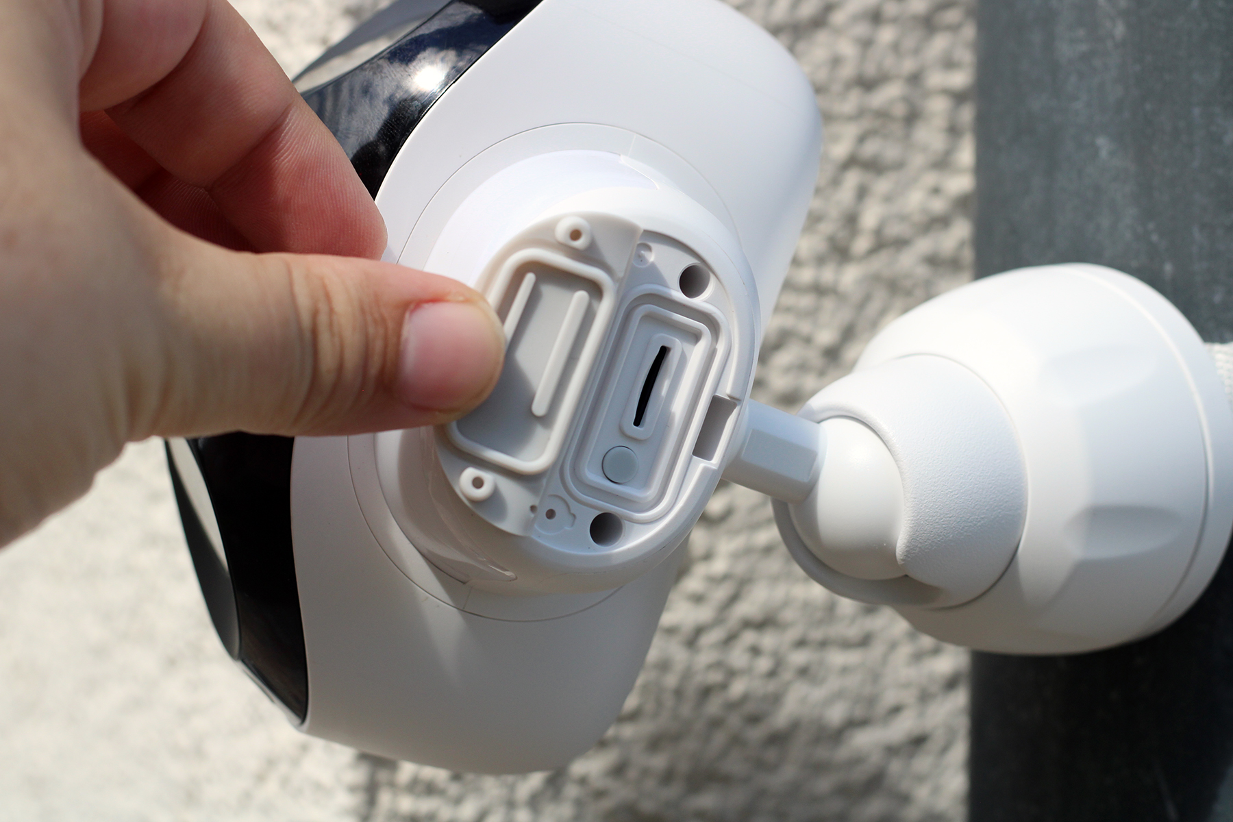 Aufgezeichnete Clips können wir entweder auf SD-Karten oder über den hauseigenen Cloud-Dienst speichern. Letzteres kostet eine monatliche Gebühr (30 GB: €4,19/Monat & €41,49/Jahr; 80 GB: €8,29/Monat & €82,09/Jahr). Das war es aber auch schon mit Funktionen hinter der Paywall, alles andere können wir ohne Gebühr und ohne Account verwenden – vorbildlich. Der SD-Kartenslot findet sich unter der Abdeckung auf der Unterseite der Kamera, ein Diebstahlschutz ist nicht vorhanden. Bedenkt man den toten Winkel unterhalb der Kamera, wäre das eine sinnvolle Ergänzung gewesen. Die Argus unterstützt laut Hersteller Karten bis zu 128 Gigabyte Speichergröße.