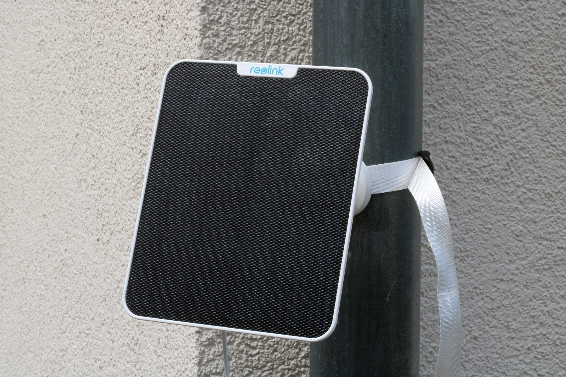 Für unseren Test liegt uns das Solar-Set vor. Dieses bietet die gleichen Montagemöglichkeiten, allerdings ist es zumindest für uns etwas schwerer, den Schwenkarm auszurichten. Beim Verstellen löst sich schnell das Gewinde, was zu einer wackeligen Gesamtkonstruktion führt. Die Stromzufuhr erfolgt über das integrierte USB-C-Kabel. Dieses bietet mit 4 Metern Länge eine hohe Flexibilität. Da der Anschluss für die Kamera über Dichtungsringe verfügt, bleibt die Reolink trotzdem wetterfest. Das Panel ist mit 6 Watt zwar nicht allzu leistungsstark, für die meisten sollte es aber genügen. Im Test schaffen wir es, den Akkustand an einem sonnigen Tag in 6 Stunden von 10 auf 19 Prozent zu steigern.