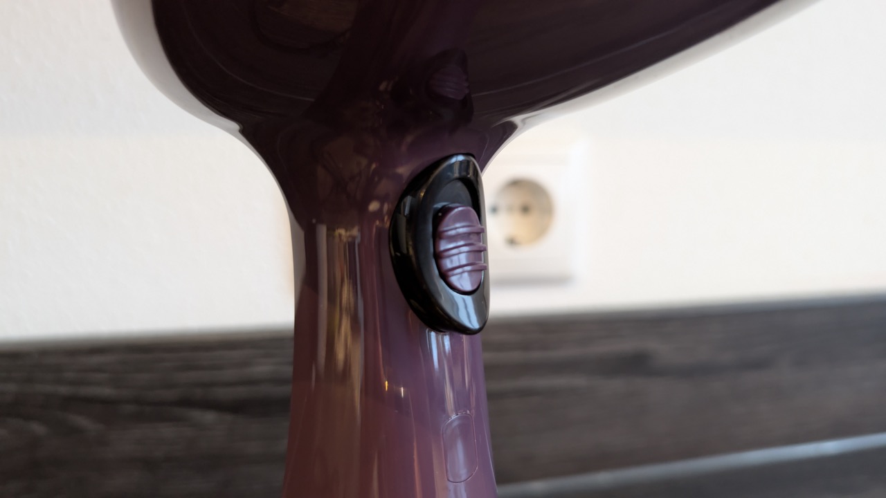 Zum Einschalten betätigen wir den großen Knopf an der Rückseite. Nach weniger als einer Minute ist das Gerät aufgeheizt. Den Dampfausstoß aktivieren wir mit der Taste an der Vorderseite. Für den Dauerbetrieb schieben wir die Taste nach unten, sodass sie eingerastet bleibt. Durch zweimaliges Drücken wechseln wir den Modus: Leuchtet der Knopf blau, ist der sanfte Modus aktiv, ideal für Baumwolle. Grün steht für den Turbo-Modus, mit dem wir auch Polstermöbel behandeln. Alles in allem klappt die Bedienung wunderbar. Sie ist eingängig, die Knöpfe bieten einen angenehmen Druckpunkt und lassen sich präzise bedienen.