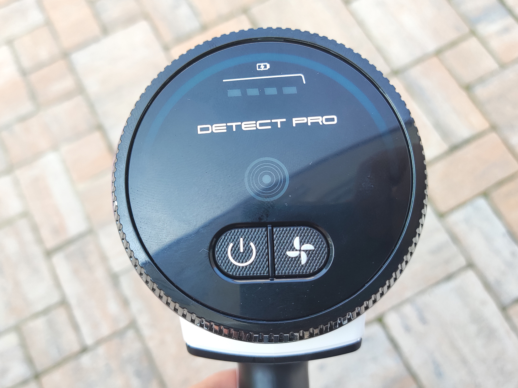 Die beiden Bedientasten liegen auf der Rückseite des Handteils. Wir erreichen Sie problemlos mit dem Daumen beider Hände. Über den Power-Knopf starten und stoppen wir den Betrieb. Über die zweite Taste schalten wir die drei Saugmodi Eco, Auto und Boost durch. Vor allem der Auto-Modus ist auf dem Papier sehr spannend, da Shark hier gleich 4 unterschiedliche Technologien vereint. DirtDetect erhöht automatisch die Saugkraft, um Teppiche gründlich zu reinigen. Mit EdgeDetect wird die Saugleistung verdoppelt, um Kanten und Ecken besonders intensiv zu säubern. FloorDetect soll den Bodenbelag automatisch erkennen und die Reinigungsleistung entsprechend anpassen. LightDetect hellt schwach beleuchtete Bereiche auf.