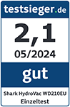 Der Shark HydroVac WD210EU ist ein insgesamt „guter“ Waschsauger mit Verbesserungspotenzial. So gefallen uns die Saugergebnisse, allerdings landet nicht der komplette Schmutz im Behälter. Viel bleibt auch auf der Saugdüse zurück. Die Wischergebnisse sind schön gleichmäßig, für eine Tiefenreinigung ist der HydroVac jedoch nicht geeignet. Uns stört im Test am meisten, dass wir nicht ohne Wasser saugen können. Somit ersetzt er aus unserer Sicht keinen herkömmlichen Staubsauger, sondern ist eher ein Zweitgerät. Bedienung und Handhabung stellen uns nicht vor Probleme, wir hätten uns jedoch noch ein paar mehr Modi gewünscht. Die Verarbeitungsqualität gefällt uns dagegen sehr gut.