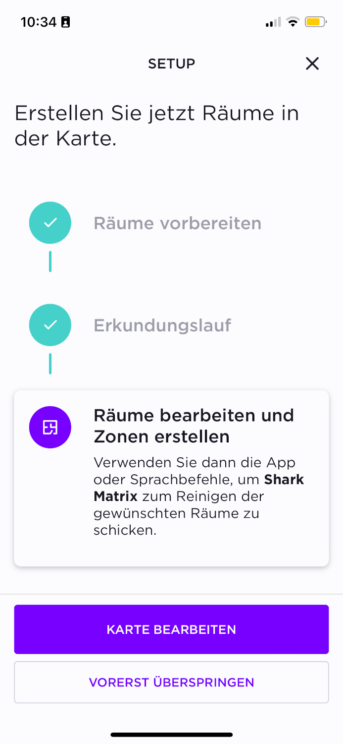 Nach der Einrichtung der App starten wir die Kartierung. Prinzipiell funktioniert die Erstellung, doch bei kleineren oder engeren Räumen stößt der Shark Matrix schneller an seine Grenzen. Der Roboter hat Schwierigkeiten, sie korrekt zu erkennen und fügt sie entweder als ein Zimmer zusammen oder erkennt sie erst gar nicht. Dies erfordert manuelle Nacharbeit, bei der wir die Räume in der App selbst einzeichnen und korrigieren müssen. Dabei stellt sich jedoch ein weiteres Problem heraus: Wir können die Zimmer nicht frei mit Linien, sondern nur in Form von Rechtecken einzeichnen. Dies führt dazu, dass sich Räume überlappen, anstatt klar voneinander getrennt zu sein. Das ist störend, wenn wir gezielt einzelne Zimmer reinigen möchten, aber aufgrund der Überlappungen auch Bereiche anderer Zonen mitgereinigt werden.