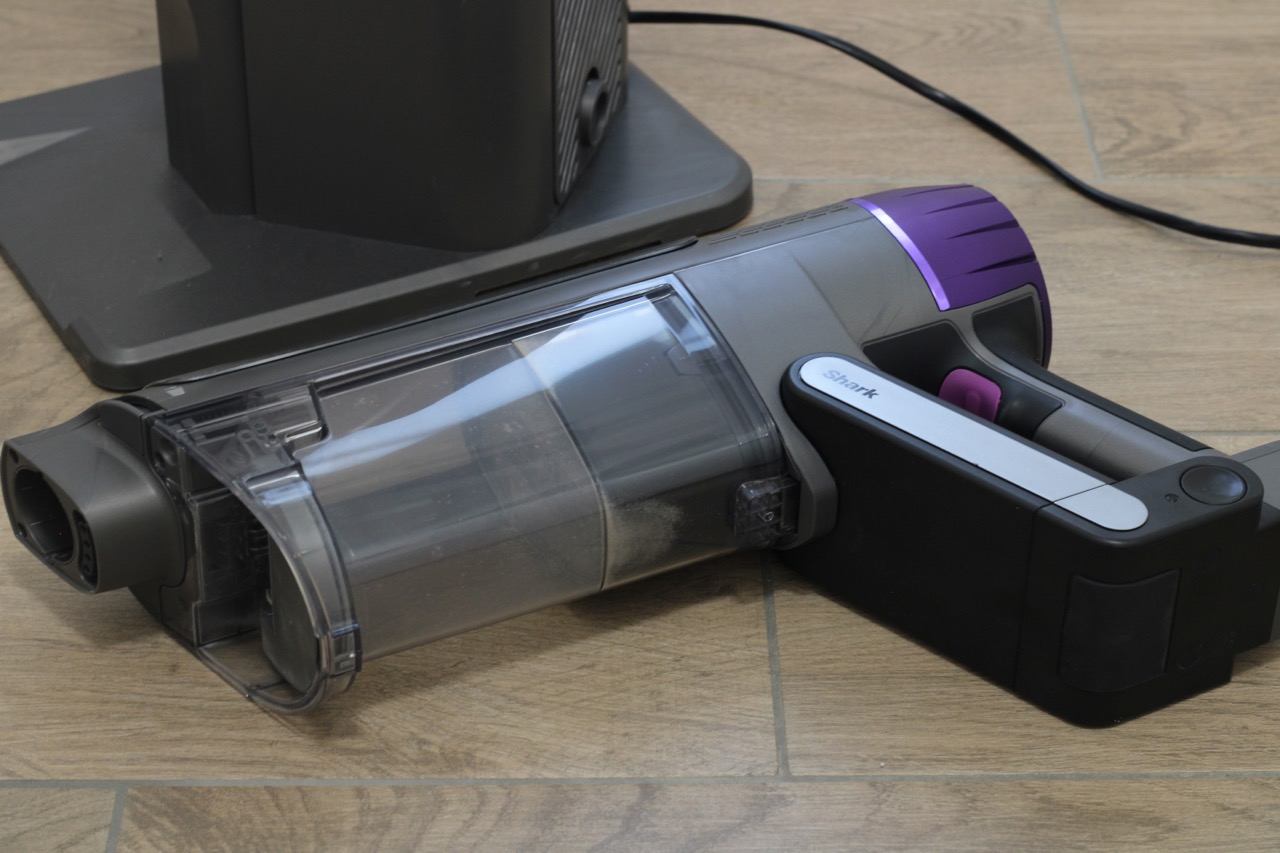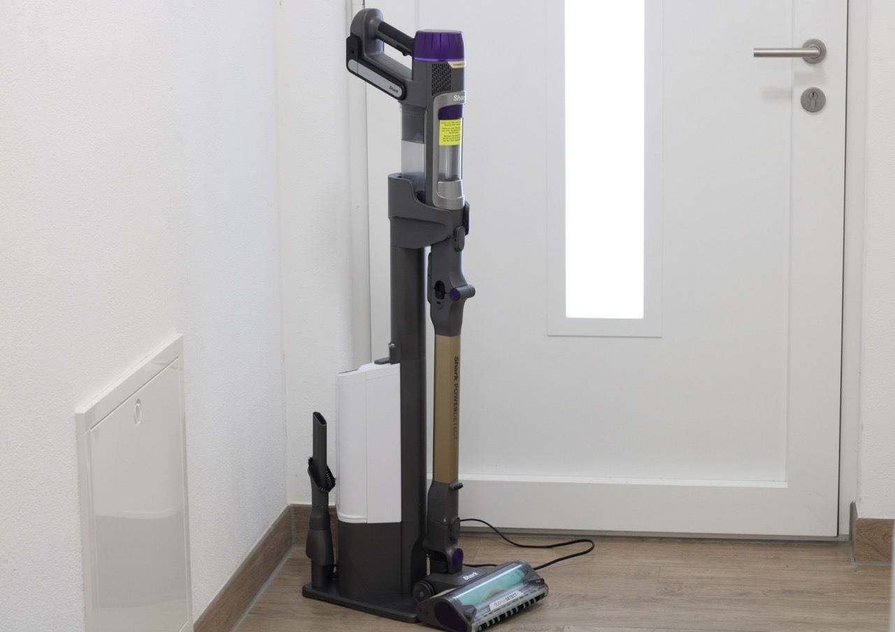 Der Staubsauger besteht größtenteils aus Kunststoff, der sich als hochwertig und robust erweist. Das Material gibt selbst bei Druck nicht nach und hinterlässt einen stabilen Eindruck. Das Saugrohr ist aus Aluminium gefertigt, was für zusätzliche Stabilität sorgt. Insgesamt entspricht die Verarbeitungsqualität dem hohen Standard, den wir von Shark bereits kennen.
