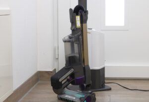 Optisch setzt der Shark PowerDetect auf eine überwiegend graue Farbgebung. Lila Akzente an der Motoreinheit und der Bodendüse setzen gezielte Kontraste, während das Saugrohr in Gold gehalten ist. Die Absaugstation präsentiert sich in einem neutralen Weiß mit dunklen Grautönen. Das Gesamtbild wirkt stimmig und durchdacht, wodurch das Design insgesamt überzeugt. Uns gefällt es jedenfalls sehr gut.