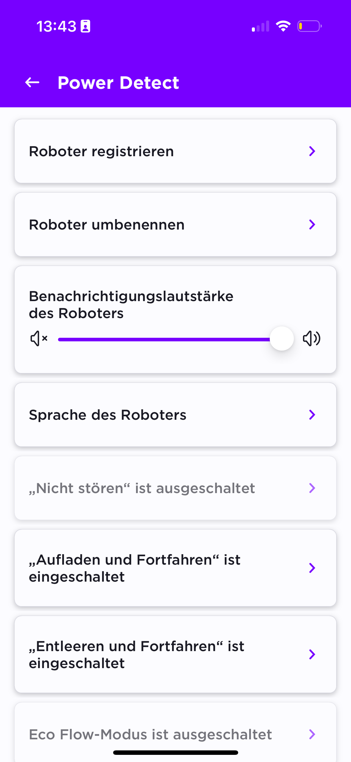 In der alltäglichen Nutzung mangelt es der App an detaillierten Einstellungsmöglichkeiten. Standardfunktionen wie das Zusammenführen und Trennen von Räumen sowie das Festlegen von No-Go-Zonen sind zwar vorhanden, doch es fehlen fortgeschrittene Optionen. Individuelle Reinigungsanpassungen für einzelne Räume sind nicht möglich. Nutzerinnen und Nutzer können nicht festlegen, welche Räume nur gesaugt und welche in einem Durchgang gewischt und gesaugt werden sollen. Angesichts des Preissegments ist das ein klarer Nachteil. Ebenso fehlt die Möglichkeit, die Wischpads nach einer bestimmten Fläche automatisch reinigen zu lassen oder die Wischintensität individuell anzupassen.