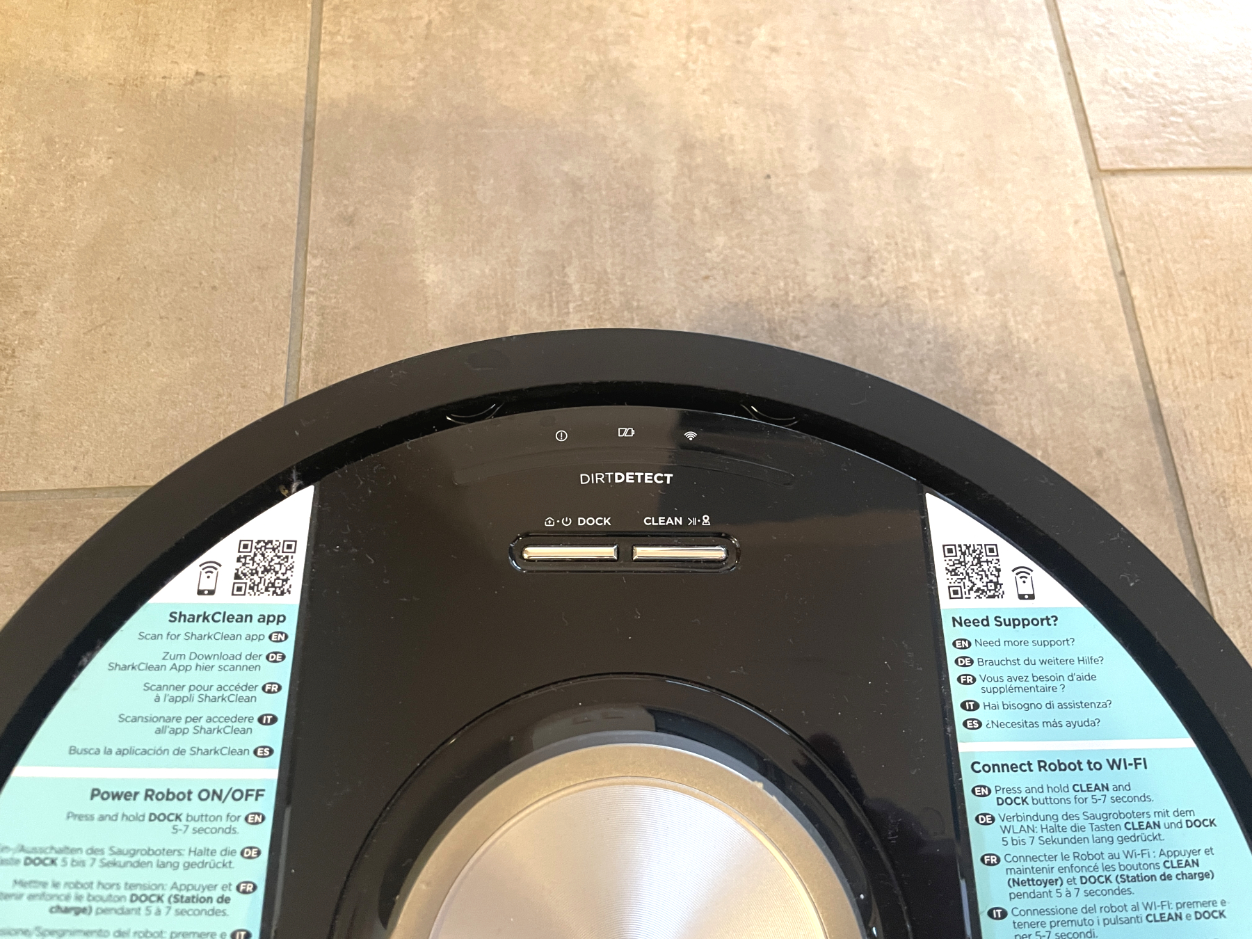 Die eigentliche Einrichtung erfolgt über die Shark Clean-App, die sowohl für iOS als auch für Android verfügbar ist. Der Einrichtungsprozess ist klar strukturiert und gut durchdacht. Zuerst schalten wir den Roboter über den Power-Button ein und koppeln ihn mit der Ladestation. Danach wird das Gerät mit unserem WLAN verbunden. Dank der hilfreichen Anleitungen, Bilder und Texte in der App verläuft dieser Prozess schnell und problemlos. Innerhalb von etwa zehn Minuten ist der Roboter einsatzbereit.