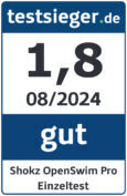 Die Shokz OpenSwim Pro bieten zwar keinen Spitzenklang und viele Einstellungsmöglichkeiten, sind dank IP67-Zertifizierung aber für Sportler, insbesondere Schwimmerinnen und Schwimmer, interessant. Durch die offene Bauweise nimmt man Umgebungsgeräusche deutlich wahr, was insbesondere im Outdoor-Training ein Sicherheitsvorteil sein kann. Mit einer Akkulaufzeit von mehr als 5 Stunden und hohem Tragekomfort sind sie auch gut für längere Trainingssessions geeignet.