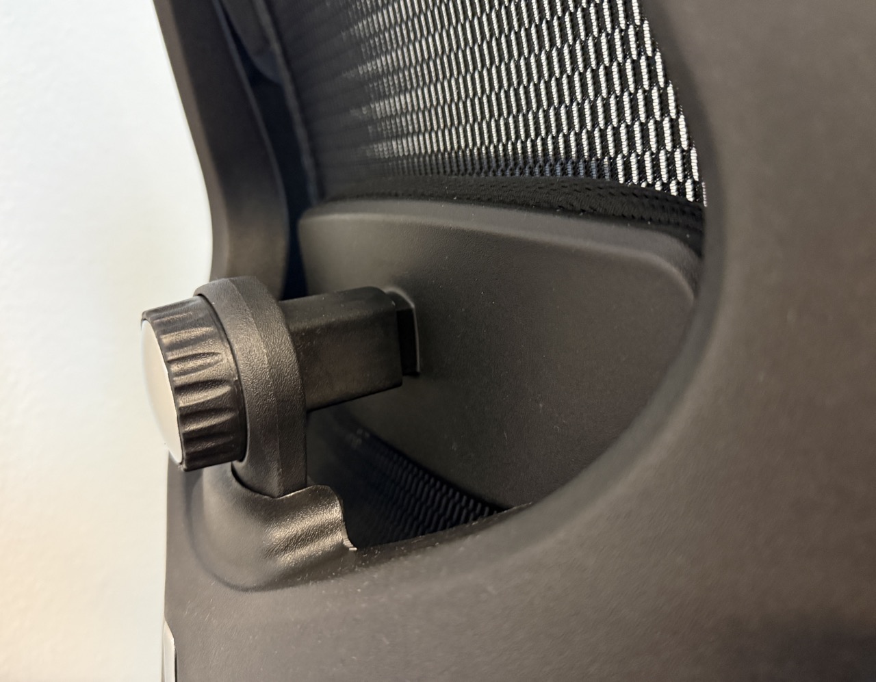 Auch bei der Rückenlehne zeigt sich Licht und Schatten: Sie ist angenehm geformt und trägt zur Entlastung des oberen Rückens bei. Leider fehlt eine echte, ausgeformte Lordosenstütze. Zwar gibt es eine einfache Lendenstütze, die sich vertikal und vorizontal verstellen lässt. Eine dynamische Anpassung wie beim von uns getesteten Sihoo Doro C300 ist aber nicht möglich. Gerade im unteren Rücken bleibt damit ein kleines ergonomisches Defizit bestehen.