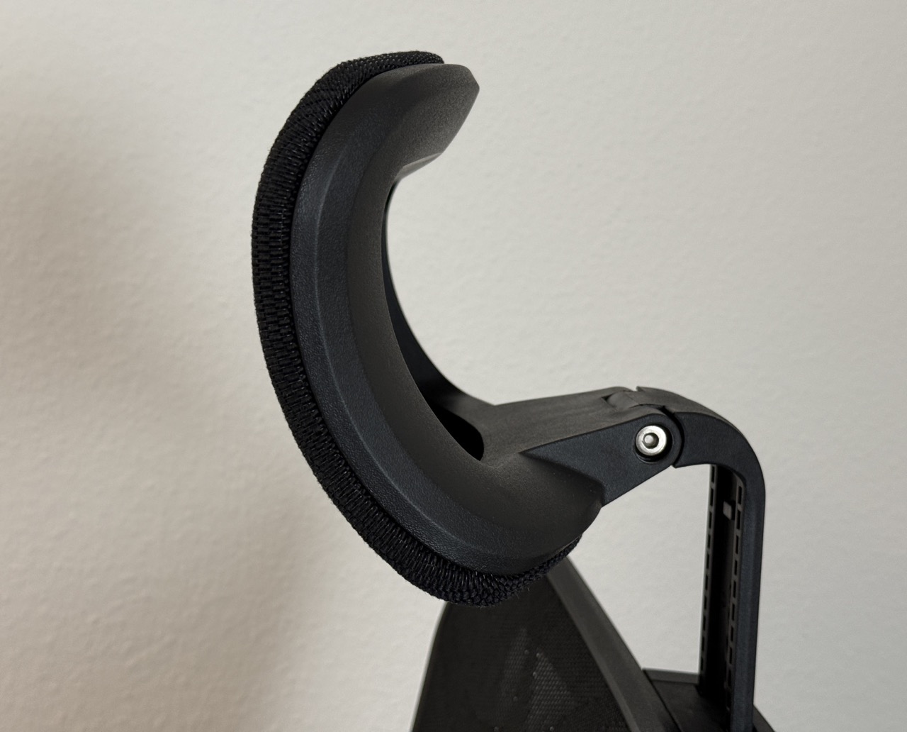 Die Kopfstütze ist um etwa zehn Zentimeter in der Höhe verstellbar und am Gelenk drehbar. Leider unterstützt sie unseren Nacken nicht in jeder Position optimal. Beim Wechsel der Sitzhaltung fehlt es ihr an Flexibilität. Eine ergonomischere Form oder mehr Verstellmöglichkeiten nach vorne und hinten würden den Komfort deutlich verbessern.