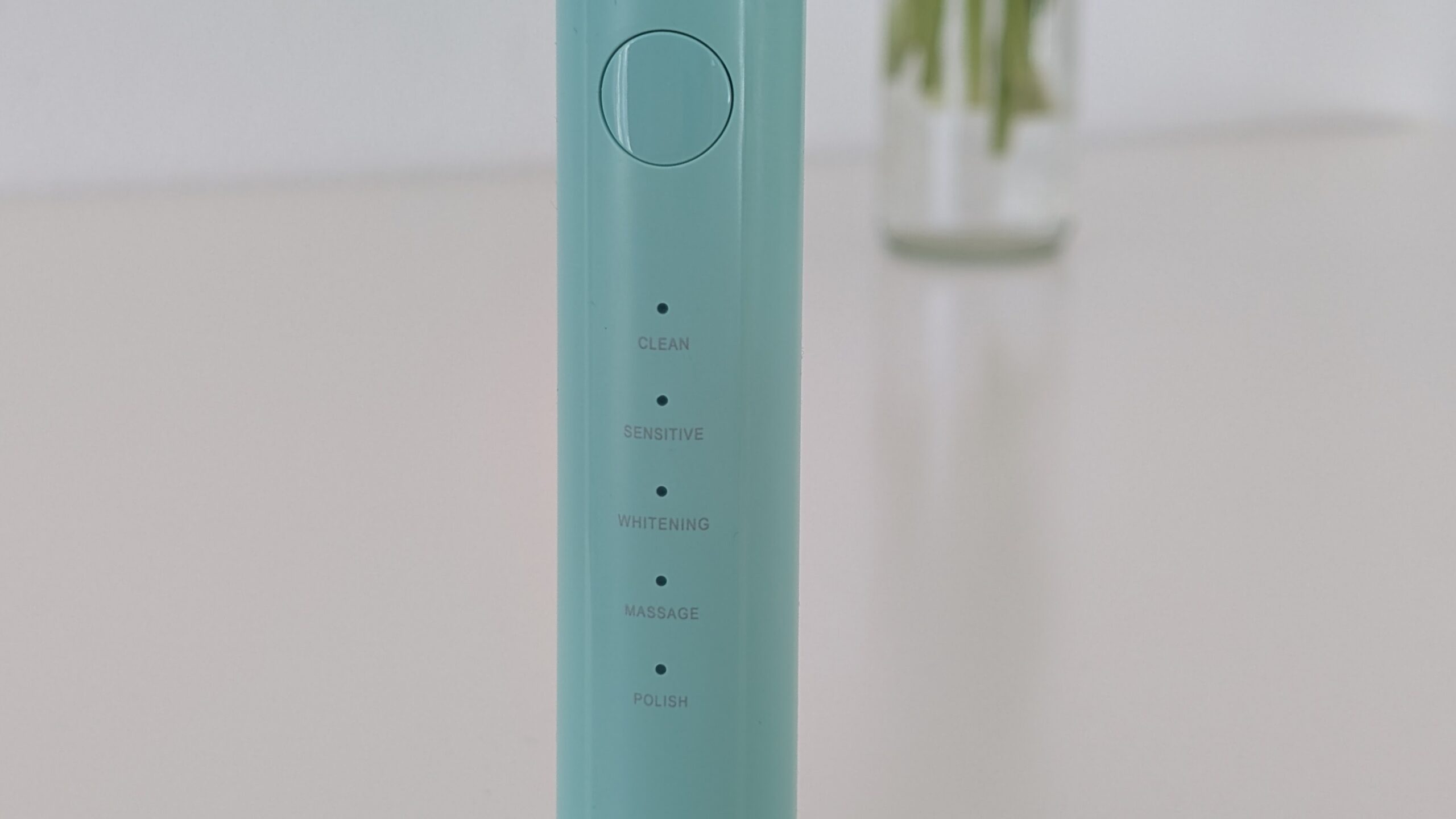 Die Bedienung der Smyle E-Brush ist im Alltag ausgesprochen intuitiv. Die Steuerung erfolgt über eine einzige Taste, mit der sich sämtliche Modi durchschalten lassen. Dabei wird der gewählte Modus jeweils per LED über dem entsprechenden Schriftzug angezeigt – eine einfache, aber sehr effektive Lösung. Die Taste hat einen sehr angenehmen Druckpunkt und reagiert zuverlässig.