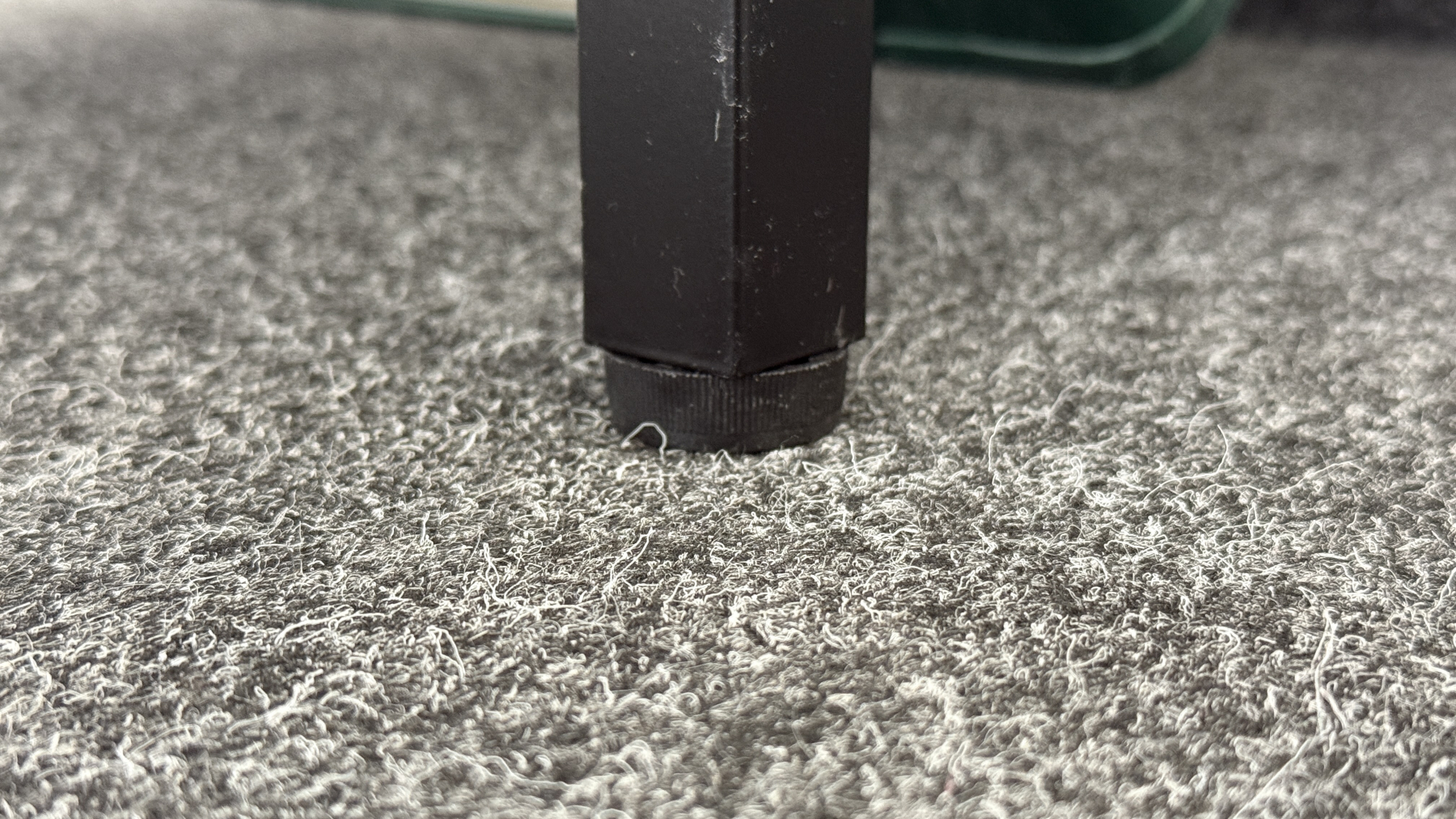 Das Material ist fest, verwindungssteif und lässt sich weder unter Belastung noch beim Anfassen durchbiegen. Der Rahmen mit 25 Millimetern Stärke wirkt wertig und langlebig. Anders sieht es bei der Beschichtungsqualität aus. Bereits beim Auspacken sind Produktionsrückstände auf der Oberfläche sichtbar; beim ersten Kontakt entstehet direkt ein Kratzer. Das Versprechen einer stoß- und kratzfesten Oberfläche erfüllt die matte Epoxidbeschichtung in der Praxis nicht.
