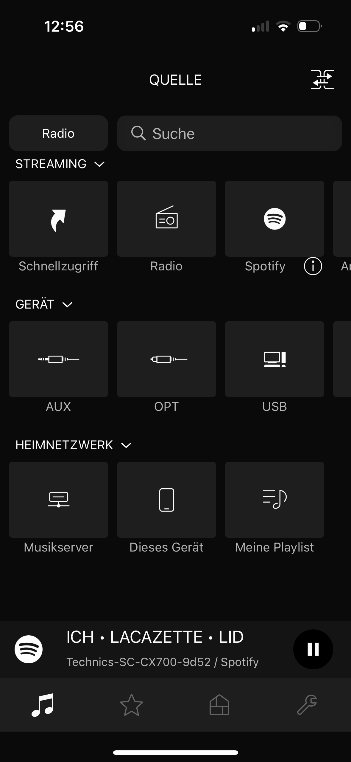 Alternativ können Nutzerinnen und Nutzer auch die beiliegende Fernbedienung verwenden, die alle grundlegenden Funktionen abdeckt. Sie ist gut verarbeitet und reagiert zuverlässig auf Eingaben. Noch komfortabler gestaltet sich die Steuerung aber über die Audio Center-App von Technics, die kostenlos sowohl für Android als auch iOS verfügbar ist. Die Ersteinrichtung der Lautsprecher über die Netzwerktaste und die App funktioniert reibungslos. Bereits im ersten Anlauf können wir die SC-CX700 erfolgreich mit dem WLAN verbinden. Die Installation dauert weniger als 5 Minuten und erfordert lediglich einen kurzen Blick in die Bedienungsanleitung. Nach erfolgreicher Einrichtung lassen sich sämtliche Einstellungen bequem über die App vornehmen.
