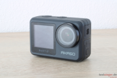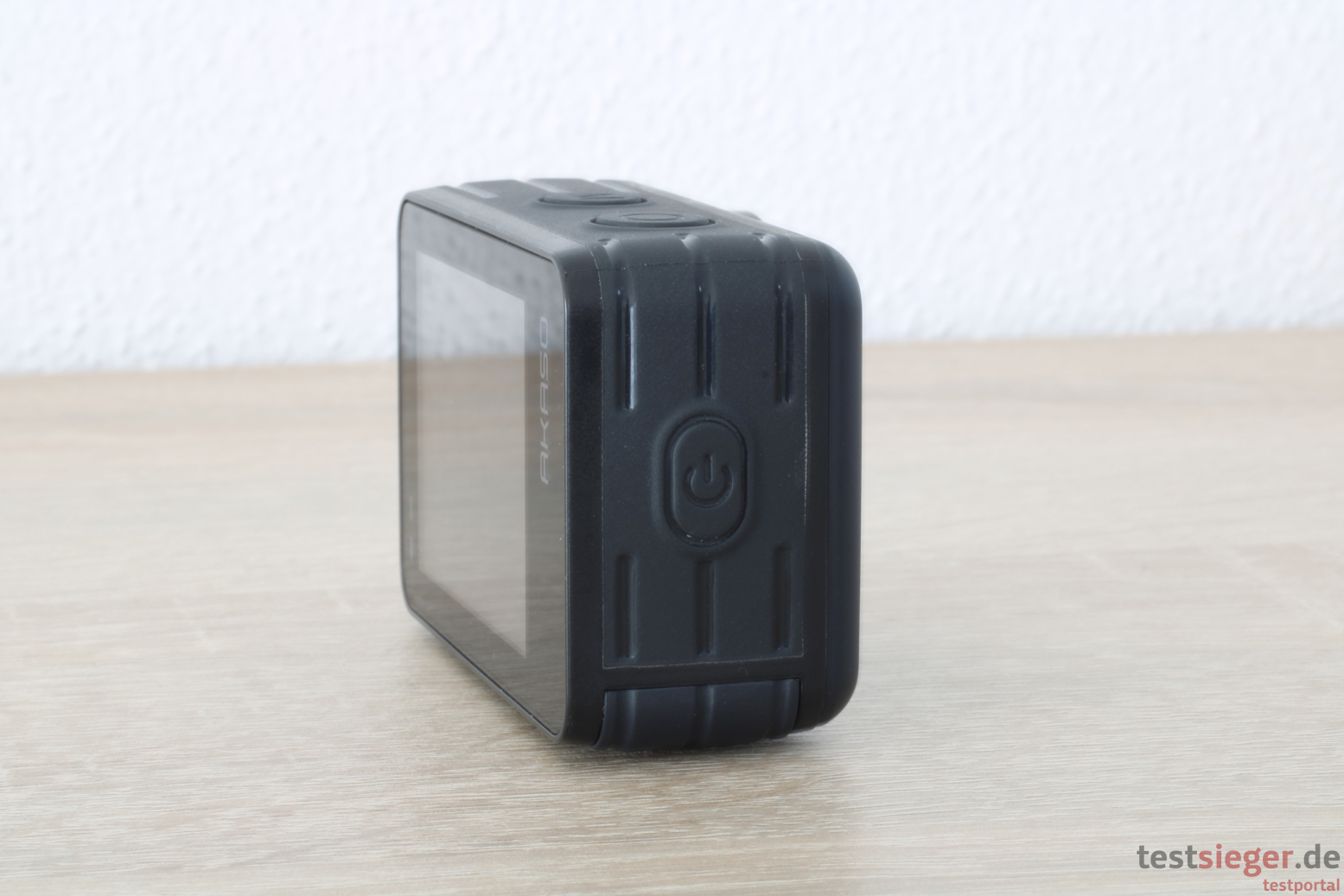 Etwas unverständlich: Viele Funktionen wie die Loop-Aufnahme, Zeitraffer oder Zeitlupe sind nicht in den Einstellungen zu finden. Diese öffnen sich durch Druck auf die Auflösungsanzeige des Touchscreens. Wer die Fotoqualität anpassen möchte, muss noch einen dritten Weg gehen. Durch zweimaligen Druck auf die Modus-Taste gelangt der Nutzer in ein weiteres Menü mit den Unterpunkten: Wiedergabe, Videoeinstellungen und den Fotoeinstellungen. Warum Akaso nicht alle Punkte zusammenfasst ist unverständlich. Somit wirkt das Bedienkonzept insgesamt wenig durchdacht und es bedarf viel Übung. Da keine gedruckte Anleitung beiliegt, bleibt nur ausprobieren oder dem QR-Code zum ausführlichen digitalen Begleitheft zu folgen. Ein weiterer Negativpunkt: Wer das wasserfeste Gehäuse verwendet, muss natürlich ohne Touchscreen auskommen. Doch nicht alle Menüpunkte lassen sich über die Tasten erreichen. Die Knöpfe am Schutzgehäuse sind recht hart gefedert. Somit besteht nicht die Gefahr, dass der Nutzer während Action-Aufnahmen ungewollt Eingaben tätigt.