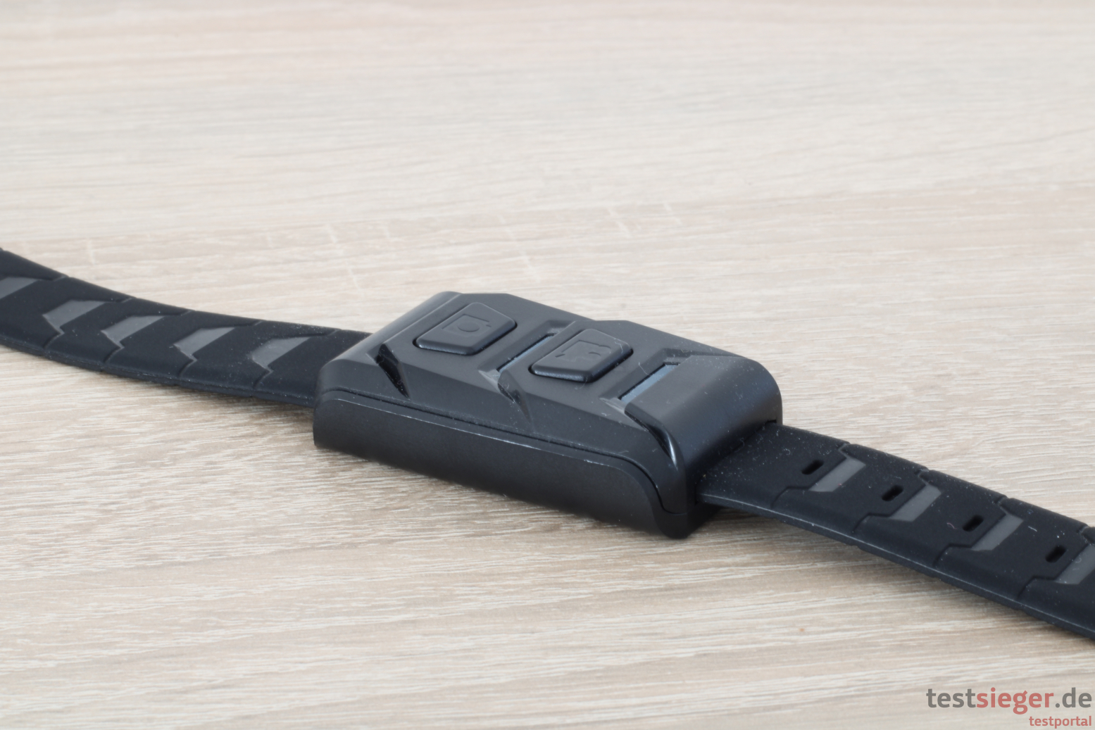 Er hat die Wahl aus insgesamt vier Bedienmöglichkeiten. Die Rudimentärste stellt die beiliegende Fernbedienung samt Armband dar. Diese verfügt über zwei Tasten für die Aufnahme von Videos oder Fotos. Zusätzliche Optionen wie das Ein- oder Ausschalten der Kamera sind nicht möglich, trotzdem ist der kleine Schalter in einigen Situationen sicherlich praktisch. Schön: Er ist bereits ab Werk mit der Akaso gekoppelt, eine gesonderte Einrichtung ist also nicht nötig.