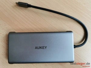 Bei den wichtigsten Aspekten – Performance im Betrieb sowie Auswahl an Anschlüssen – punktet der 12-in-1 USB-C Hub CB-C78 von Aukey. Abgesehen von einem Kopfhörer- und Mikrofonanschluss vermissen wir kaum einen Anschluss. Keine Anschlusselemente stehen hervor, der Hub ist alles in allem sehr sauber verarbeitet. Die Betriebsgeschwindigkeiten können sich ebenfalls sehen lassen, auch wenn sie die Herstellerangaben nicht ganz erreichen. Details wie Gummifüßchen und eine Betriebsanzeige legen noch ein paar Pluspunkte drauf.