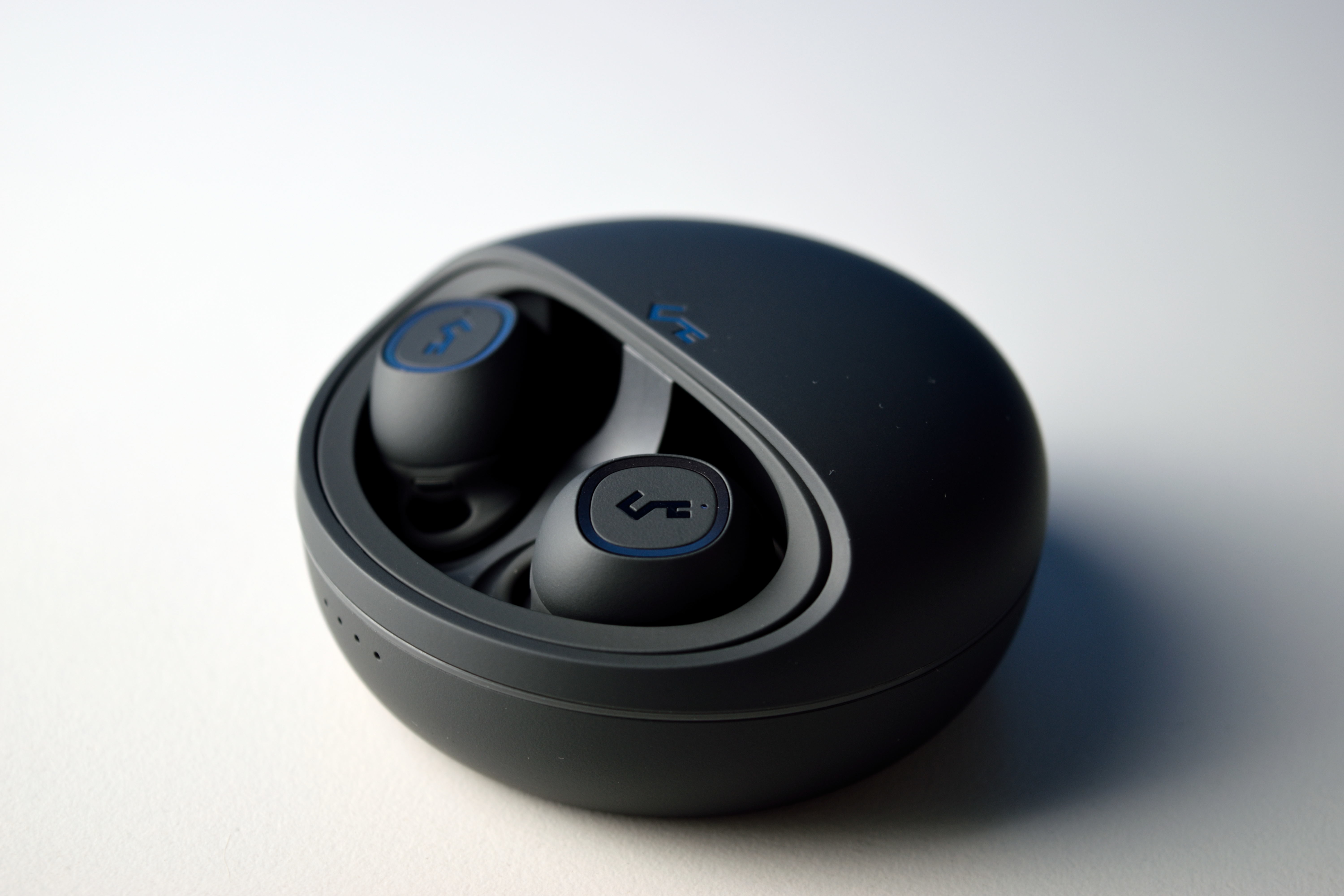 Im Lieferumfang befindet sich neben den Ohrstöpseln und dem Ladecase ein Ladekabel sowie Ohraufsätze und Innenohrbügel in drei Größen. Vier LEDs zeigen den Ladezustand des Etuis an, das bis zu zweieinhalb zusätzliche Aufladungen der Ohrhörer ermöglicht. Die Spieldauer mit einer Ladung beträgt bis zu sieben Stunden, sodass theoretisch ein guter Tag Musikhören ohne Steckdose möglich ist. Einziger Kontrapunkt: Das Case ist vergleichsweise groß.