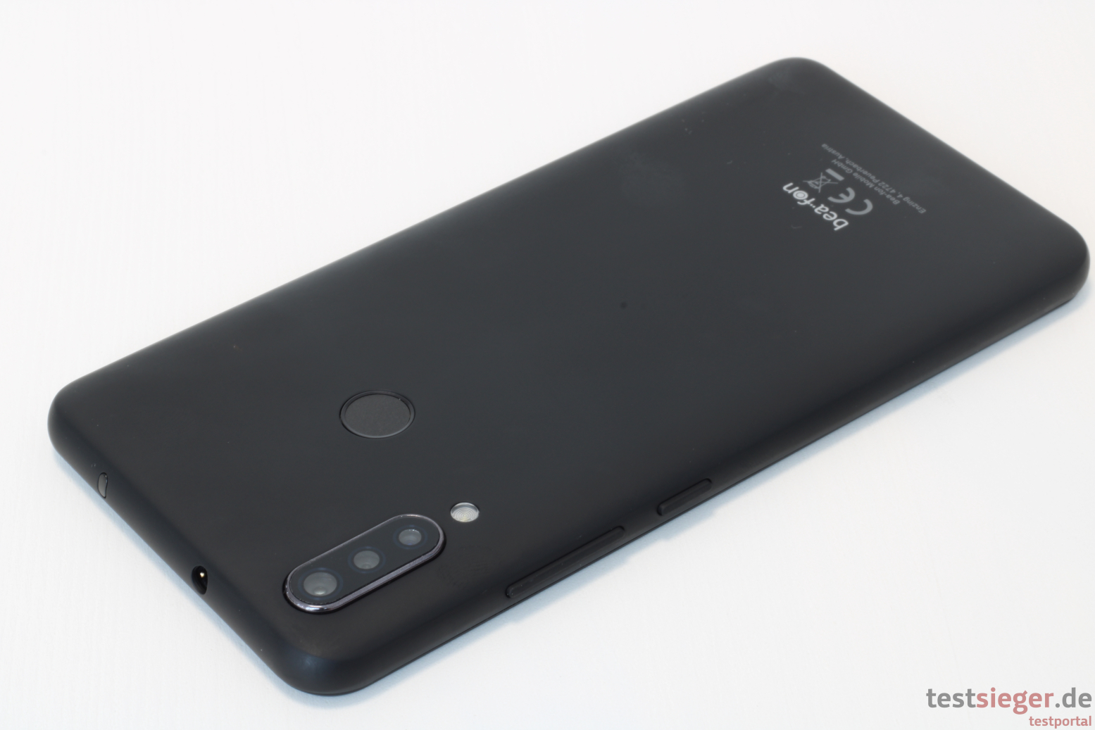 Bea-fon verwendet ein klassisches Tasten-Layout. Power-Knopf und Lautstärke-Wippe liegen dementsprechend auf der rechten Seite. Die Bedienung mit nur einer Hand ist problemlos möglich, die Tasten punkten zudem durch einen angenehmen Druckpunkt und reagieren zügig. Letzteres ist beim Fingerabdrucksensor auf der Rückseite nicht immer der Fall. Der Finger muss sehr genau aufliegen, häufig erkennt er unseren Abdruck erst beim zweiten oder dritten Versuch.