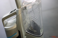 Mit weit über einem Meter in der Höhe und knapp 20 Zentimetern Breite an der Gehäusemitte ist der Bissell sicherlich nicht kompakt ausgefallen. In Kombination mit dem hohen Gewicht von knapp fünf Kilogramm erschwert das den Transport, zum Beispiel in das nächste Stockwerk. Dank extra Tragegriff auf Höhe des Frischwassertanks lässt sich das Gerät trotzdem recht komfortabel tragen. Wer möchte kann es aber auch am Stiel anheben. Diesen muss der Nutzer nach dem Auspacken zwar noch über ein einfaches Klick-System anbringen, danach hält er aber sehr fest.