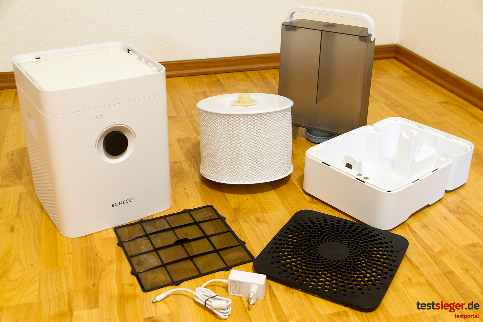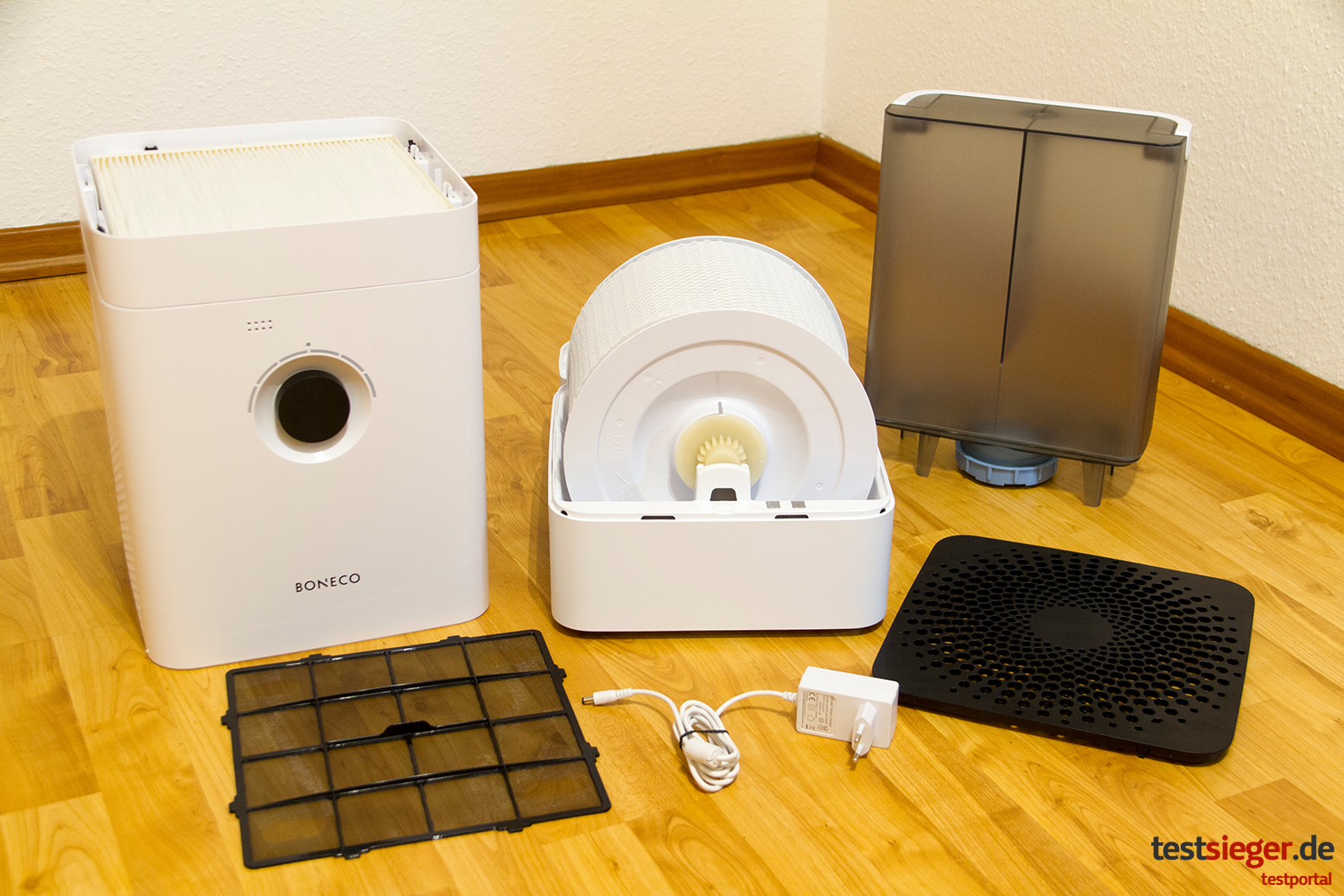 Bei der Säuberung des Geräts will der Hersteller es dem Nutzer so einfach machen wie nur möglich und das gelingt. Der Halter der Verdunstermatte und die Wasserwanne finden in der Spülmaschine Platz. Die Verdunstermatte selbst, sowie Wassertank und Vorfilter lassen sich einfach mit Wasser abspülen. Damit ist der Boneco H400 schnell wieder einsatzbereit.