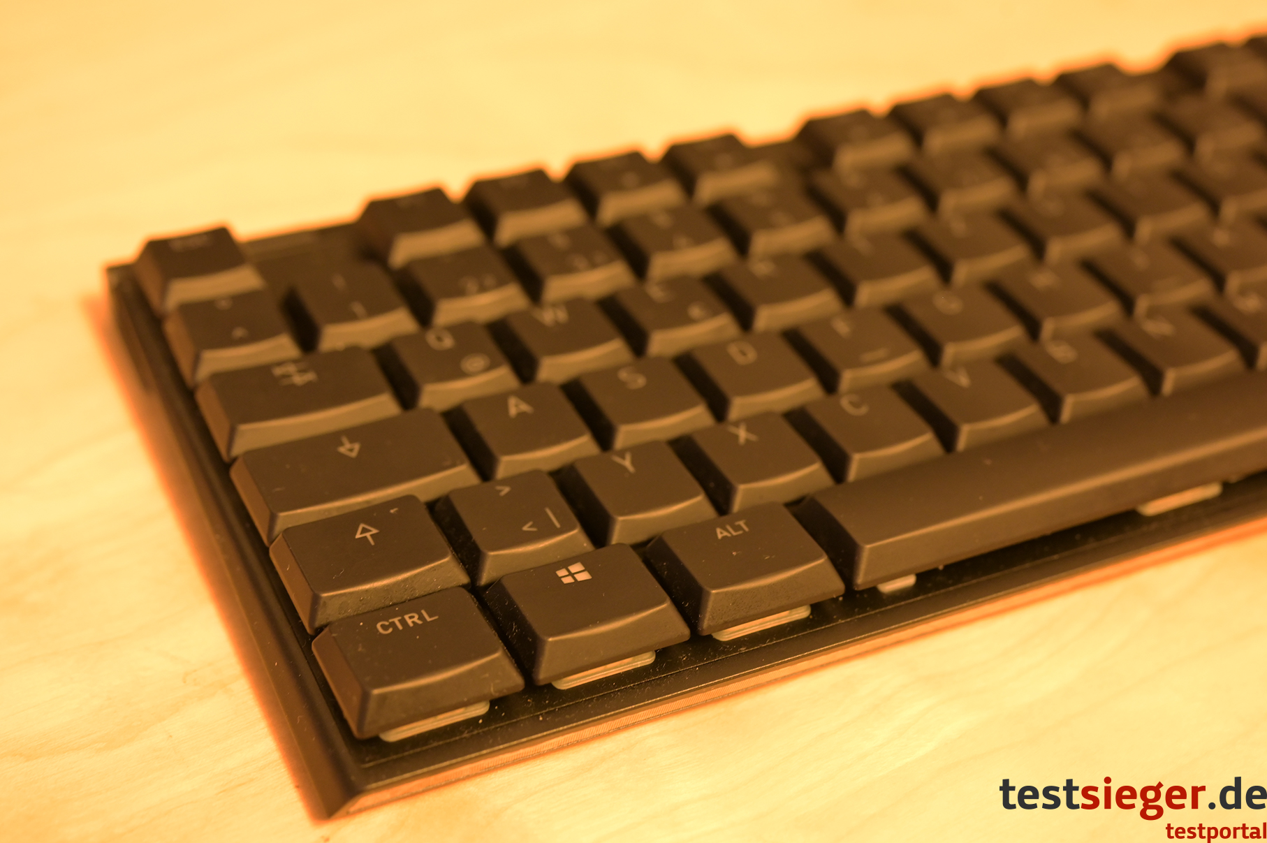 Das Schreibgefühl ist dabei sehr angenehm. Die Tasten, die mit der CHERRY MX LOW PROFILE RGB SPEED Tastentechnologie ausgestattet sind, sind angenehm groß. Der Abstand zwischen ihnen ist allerdings recht gering. Das führt gerade in der Eingewöhnungsphase in unserem Test häufiger zum Vertippen. Es benötigt etwas Übung, um mit der CHERRY MX 10.0N RGB sauber und schnell schreiben zu können. Ähnliches stellen wir auch beim Spielen in verschiedenen Situationen fest. Gerade in hektischen Aktionen kommt es häufiger vor, dass wir zwei Tasten auf einmal drücken. Auch der Abstand der vier Pfeiltasten zwischen Nummernblock auf der rechten Seite und der STRG-Taste links davon ist recht knapp bemessen. Im weiteren Verlauf des Tests verringern sich diese Fehler hingegen deutlich.