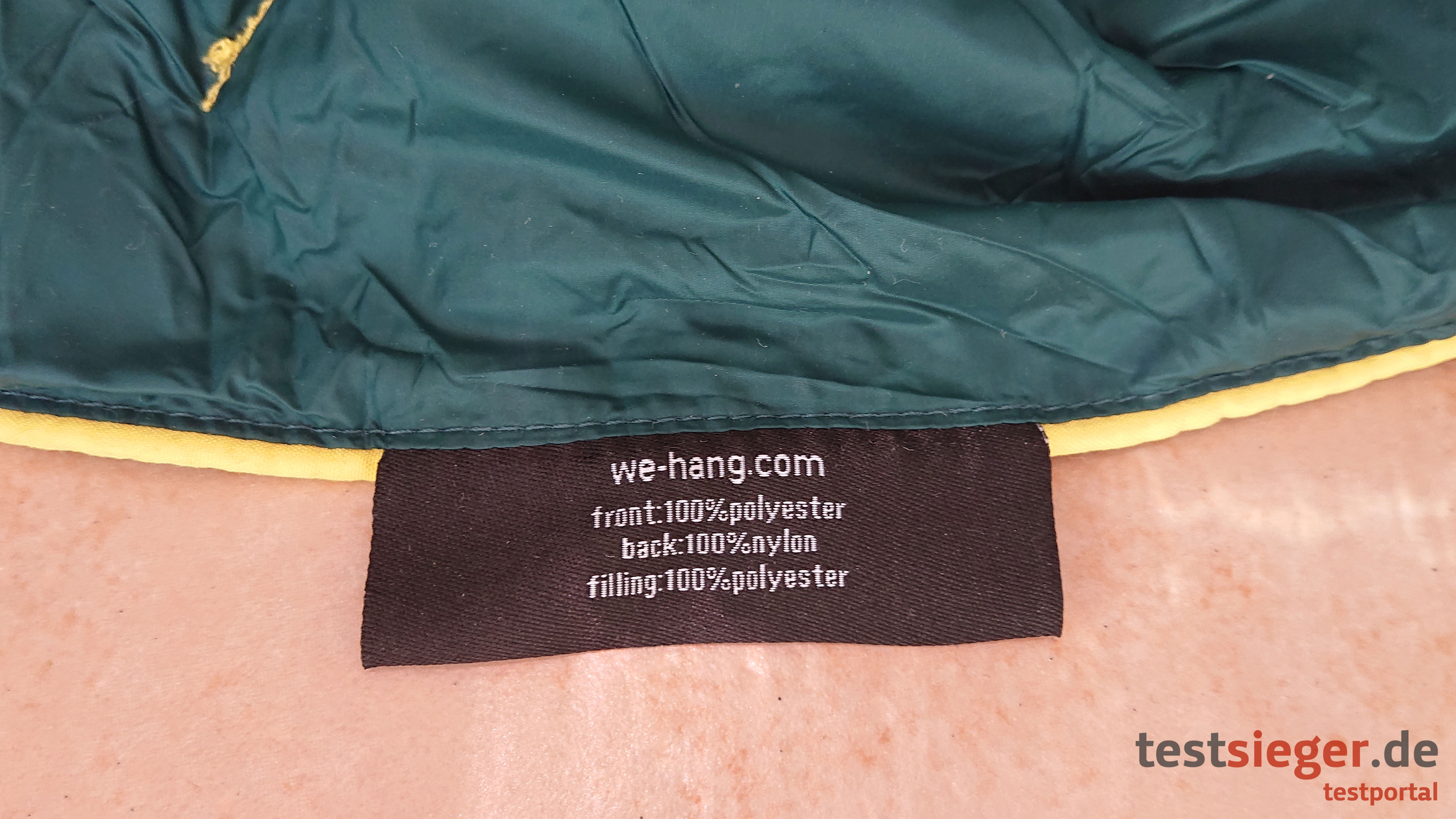 Der erste Eindruck nach dem Auspacken der Häng DÄCKE ist sehr positiv. Sie fühlt sich sehr weich und luftig an. Die grüne Farbgebung finden wir sehr passend für die vorgesehene Verwendung in der freien Natur. Die gelben Seitenverstärkungen geben der Optik noch einen extra Pfiff und tragen zur Stabilität bei. Zudem ist die Decke gut verarbeitet. Die Absteppnähte sind alle sauber vernäht und nur vereinzelt schauen kleine unschönen Fäden aus dem Material heraus. Das Obermaterial der vorderen