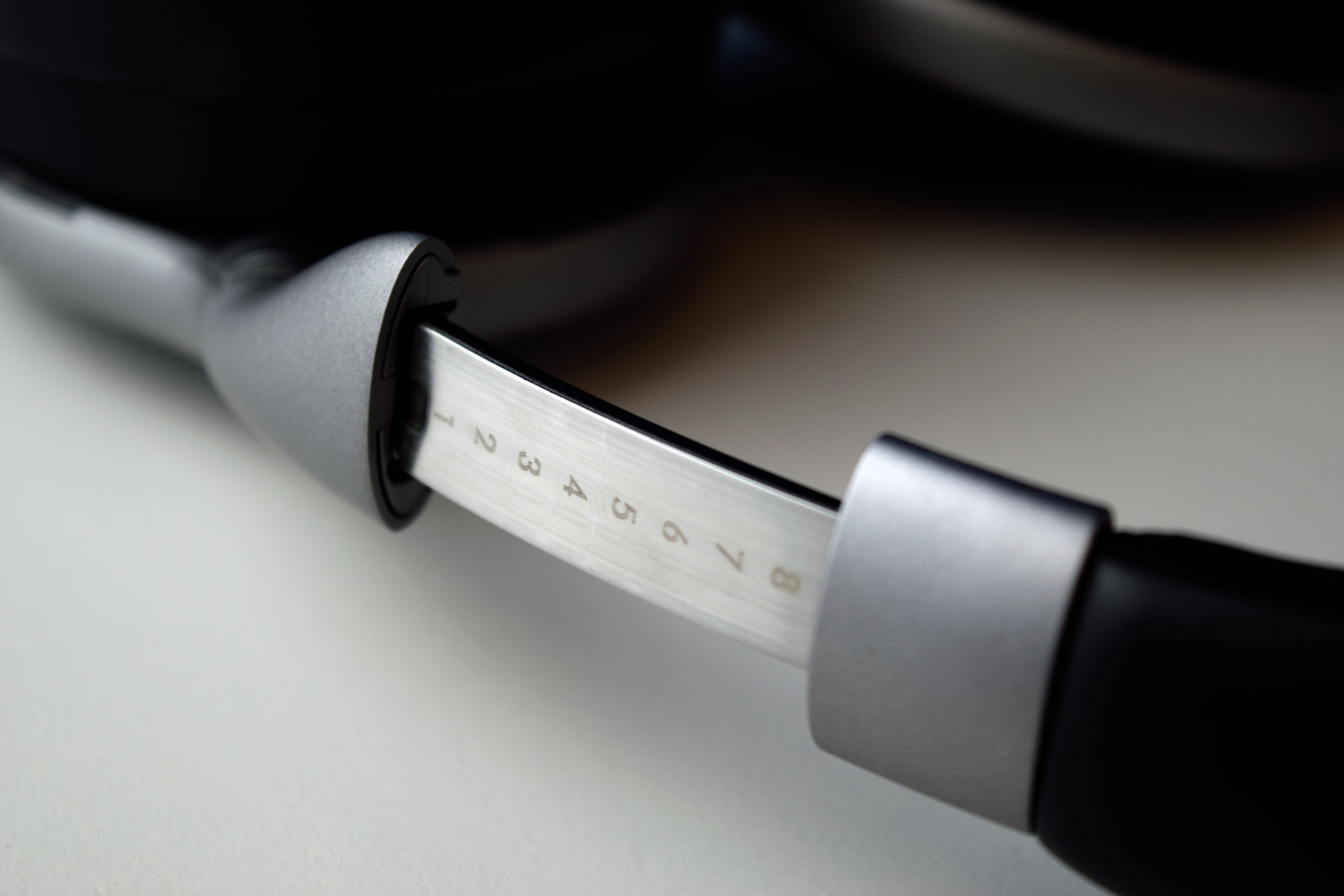 Die Bezüge des Kopfbügels und der Ohrenschalen sind aus Kunstleder. Die Ohrpolster aus Memory Foam passen sich der Kopfform des Trägers an. Die Ohrenschalen drehen sich entlang zweier Achsen, was den Sitz umso individueller anpasst. Bei mittellangem Tragen bemerken wir keine Unannehmlichkeiten, erst bei langen Hörsessions machen sich der Bügel und eine leichte Druckstelle an der Vorderseite bemerkbar – insgesamt ein sehr gutes Ergebnis. Beim Ausziehen des Kopfbügels helfen durchnummerierte Stufen, die Symmetrie zu bewahren. Dabei passt der AH-GC30 auf jeden Kopf: Im komplett ausgefahrenen Zustand ist er extrem groß.