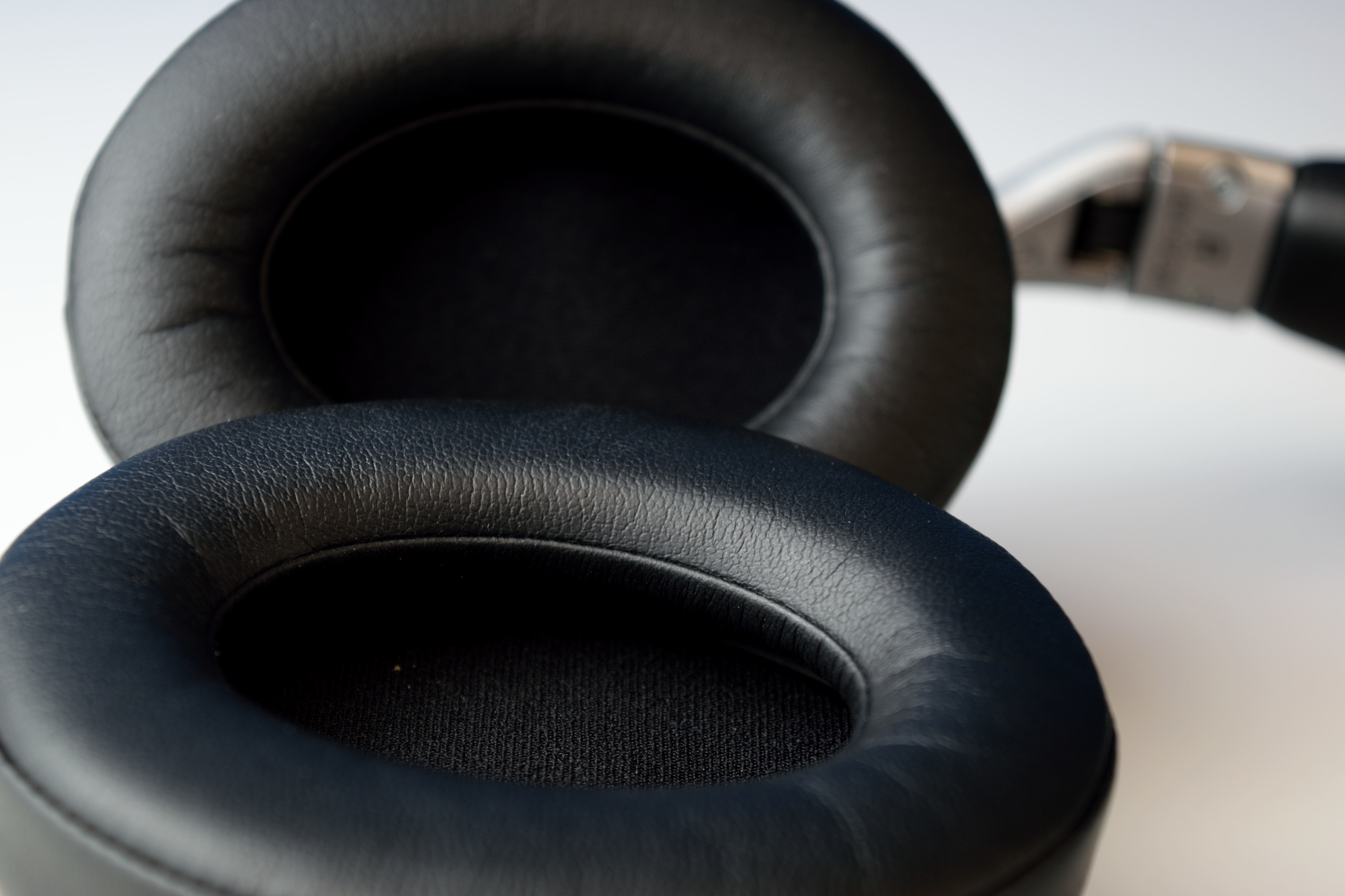 Die Bezüge des Kopfbügels und der Ohrenschalen sind aus Kunstleder. Die Ohrpolster aus Memory Foam passen sich der Kopfform des Trägers an. Die Ohrenschalen drehen sich entlang zweier Achsen, was den Sitz umso individueller anpasst. Bei mittellangem Tragen bemerken wir keine Unannehmlichkeiten, erst bei langen Hörsessions machen sich der Bügel und eine leichte Druckstelle an der Vorderseite bemerkbar – insgesamt ein sehr gutes Ergebnis. Beim Ausziehen des Kopfbügels helfen durchnummerierte Stufen, die Symmetrie zu bewahren. Dabei passt der AH-GC30 auf jeden Kopf: Im komplett ausgefahrenen Zustand ist er extrem groß.