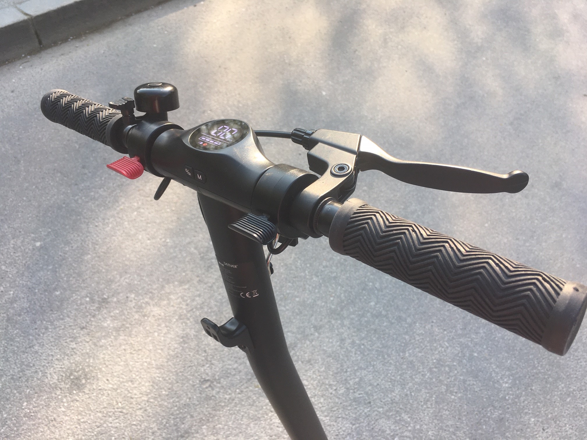 Zur Bedienung befinden sich unterhalb des Displays zwei gummierte Knöpfe. Durch einen mehrsekündigen Druck auf die linke Taste schaltet der Nutzer den Scooter ein und aus. Mit dem rechten Knopf rotiert er durch die 3 verschiedenen maximalen Geschwindigkeiten (10, 15 sowie 20 km/h). Die momentane Auswahl wird durch eine farbliche Veränderung einer kleinen LED im Display signalisiert. Dies kann bei Gebrauch durch Kinder praktisch sein, um die maximale Geschwindigkeit drosseln zu können. Allerdings merkt sich der Roller diese Einstellung nicht und startet nach dem Einschalten stets im 10-km/h-Modus, wodurch dieser jedes Mal angepasst werden muss. Das Display zeigt neben dem Fahrmodus und der Geschwindigkeit ebenfalls den Batterieladestand in vier Schritten an.