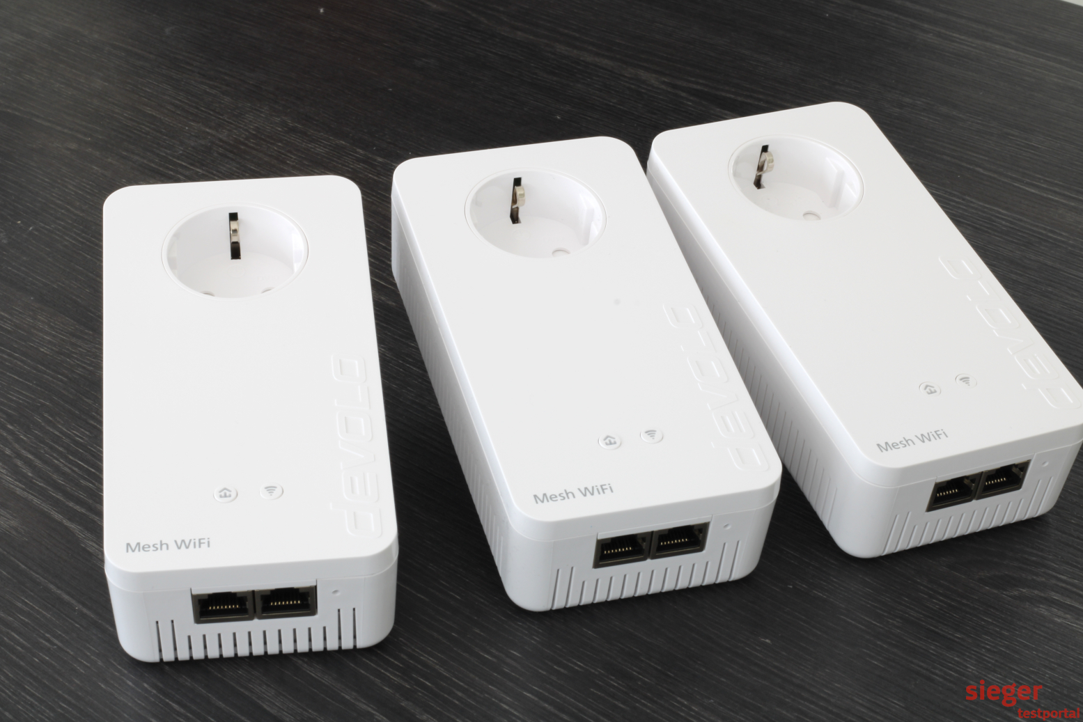Das devolo Mesh WLAN 2 Multiroom Kit vereint die Vorteile von Mesh- und Powerline-System. Über die Powerline-Technologie kommunizieren die Adapter über das Stromnetz. Alle drei Einheiten bilden ein gemeinsames Drahtlos-Netzwerk, WLAN-fähige Endgeräte wie Notebooks oder Smartphones wählen sich automatisch in den stärksten Zugangspunkt ein. Praktisch: Jeder Adapter verfügt über zwei Gigabit-Ethernet-Ports für die Übertragung per LAN-Kabel. Um die Steckdose nicht zu blockieren, verfügen die Adapter zudem über eine integrierte Steckdose.