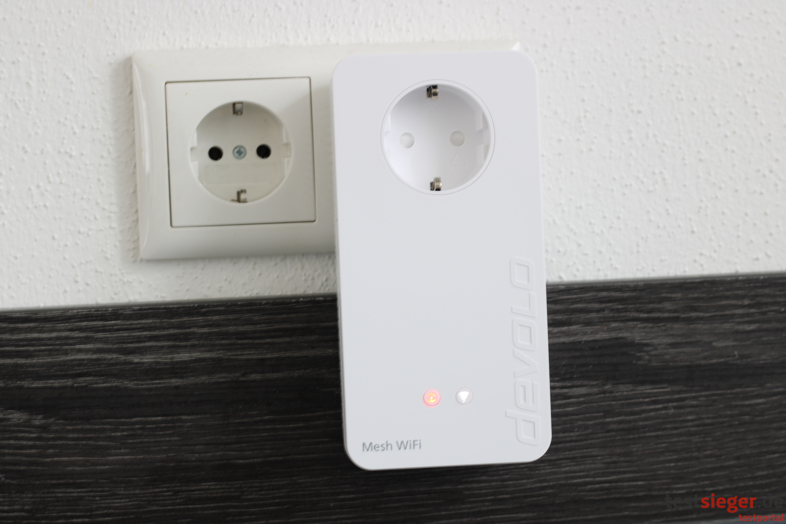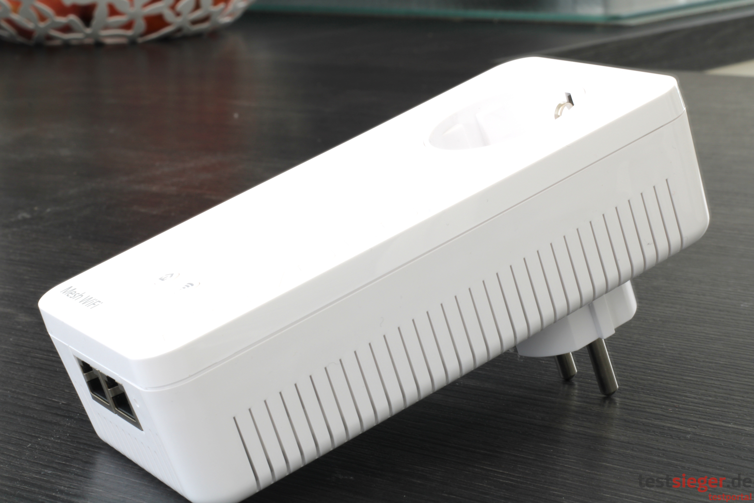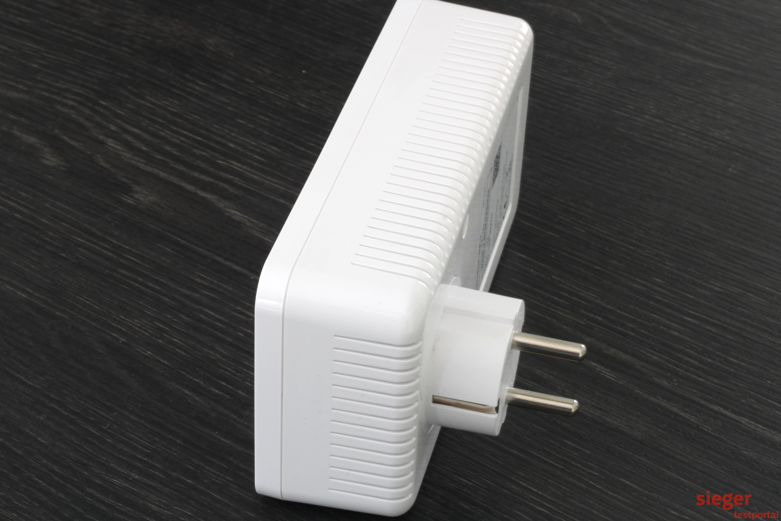 Zunächst verteilen wir zwei der Adapter in der Wohnung oder im Haus. Direkt nach dem Einstecken nehmen sie ihren Betrieb auf und die beiden Status-LEDs für PLC (Powerline Communication) und WLAN leuchten. Bereits nach sehr kurzer Zeit besteht eine Verbindung zwischen den beiden Geräten. Der dritte ist für die Kopplung mit dem heimischen Internetrouter vorgesehen. Dazu können Nutzerinnen und Nutzer das beiliegenden LAN-Kabel verwenden. Dieses hat mit 2 Metern eine ordentliche Länge, je nach Lage von Router und Steckdose kann es aber trotzdem etwas eng werden. Zumal der Adapter nichts in einem Steckverteiler oder Verlängerungskabel zu suchen hat. Dementsprechend hätten ein paar Zentimeter mehr sicherlich nicht geschadet.