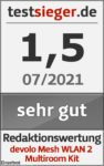 Wer mit seiner WLAN-Qualität nicht zufrieden ist, findet mit dem devolo Mesh WLAN 2 Multiroom Kit eine hervorragende Lösung. Die Einrichtung geht gut von der Hand und sollte auch Technik-unerfahrenen Nutzerinnen und Nutzern keine Probleme bereiten. Sobald die drei Adapter miteinander kommunizieren, verbessert sich die Signalstärke und die Datenrate erheblich. Wir können über unseren Testzeitraum von vier Wochen keine nennenswerten Einbrüche oder andere Probleme feststellen. Dabei bieten sowohl die devolo-Home-Network-App und devolo-Cockpit-Software einen echten Mehrwert, sind jedoch nicht unbedingt nötig. Mit einer unverbindlichen Preisempfehlung von 396,90 ist das Kit zwar sicherlich kein Schnäppchen, für die gebotene Leistung geht der Preis aber absolut in Ordnung. Zudem bietet devolo ein Set mit zwei Adapter für eine unverbindliche Preisempfehlung von 249,90 an. Unser einziger kleiner Kritikpunkt ist die recht hohe Wärmeentwicklung, die jedoch keine bedenklichen Züge annimmt.