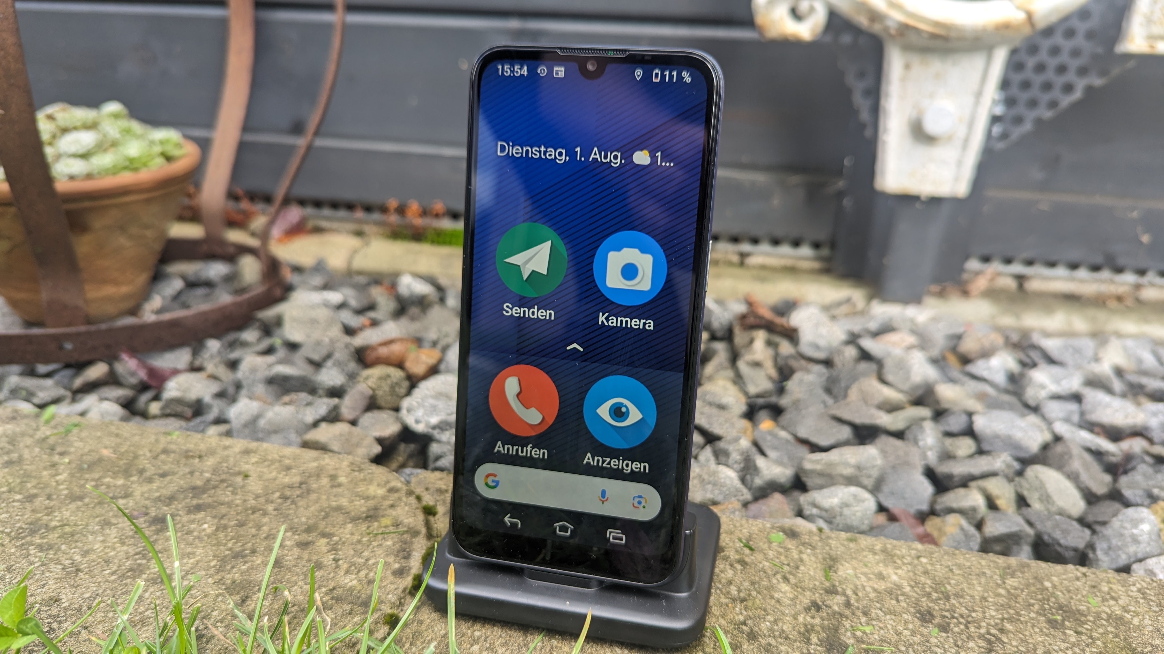 Der schwedische Hersteller setzt auf ein 6,1 Zoll großes Touchdisplay. Es löst mit 1.560 x 720 Pixeln auf und bietet eine Pixeldichte von 281 ppi. Zum Vergleich: Moderne Smartphones wie das Google Pixel 7a bieten eine Dichte von 431 ppi. Die geringere Auflösung führt dazu, dass der Bildschirm etwas unscharf ist und wir bei näherer Betrachtung Bildpunkte erkennen können. Zwar dürfte das Display nicht das wichtigste Kaufkriterium bei einem Seniorenhandy sein, für eine unverbindliche Preisempfehlung von 300 Euro dürfen Verbraucherinnen und Verbraucher aber etwas mehr erwarten.