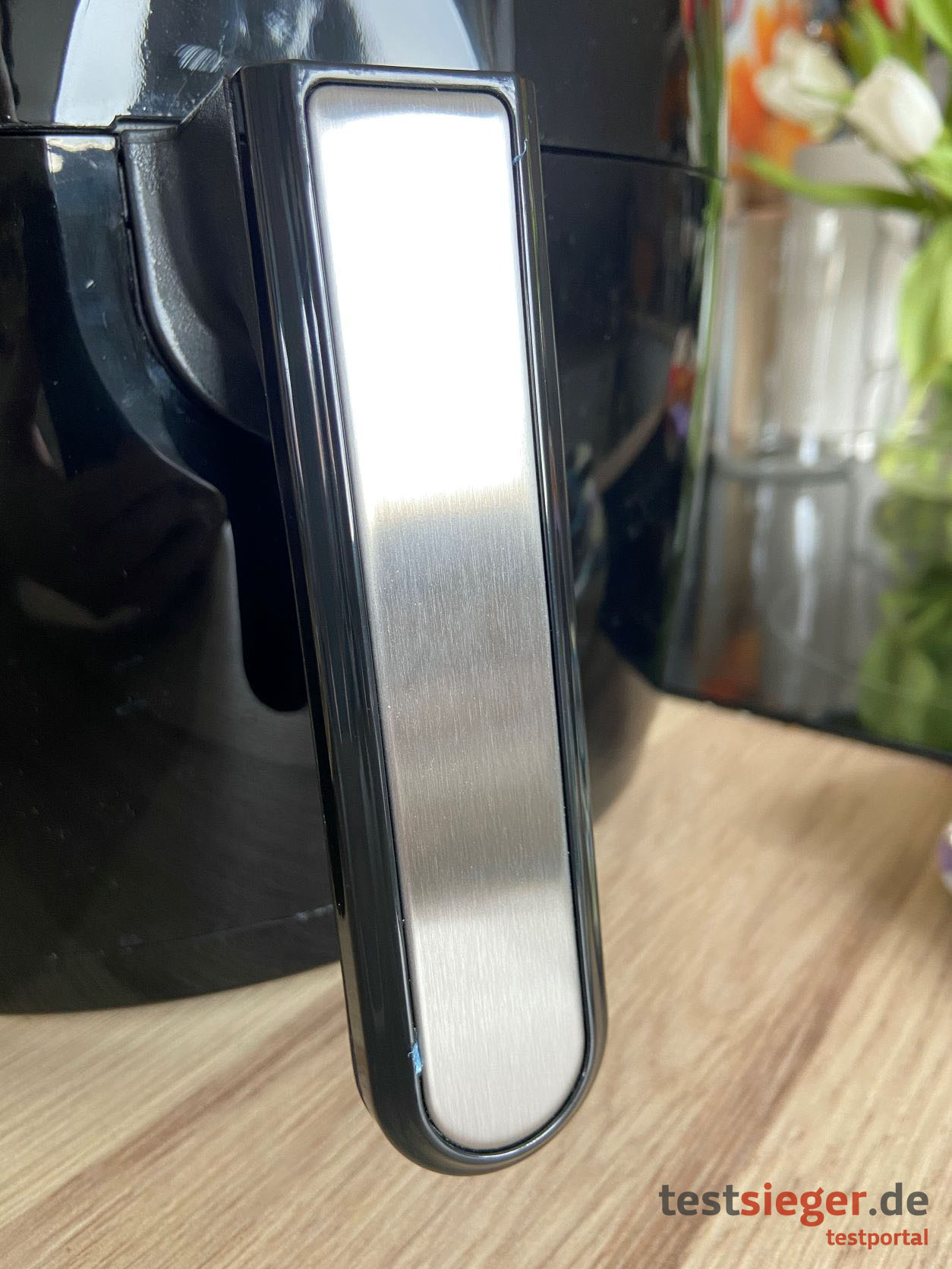 Wie bereits erwähnt, sollte während des Frittiervorgangs nicht das Gehäuse berührt werden, da die Wärmebildung durchaus spürbar ist, besonders am äußeren Frittierkorb. Zudem sollte darauf geachtet werden, dass der Korb möglichst gut mit dem Gehäuse schließt, um den Austritt von Dampf zu verhindern. Die Standfestigkeit der Heißluftfritteuse ist sehr gut, sodass Nutzerinnen und Nutzer den Korb ohne Weiteres am Griff herausziehen können. Zudem verfügt die ED-7012 über einen Überhitzungsschutz.