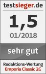 Das Emporia Classic 2G ist ein sehr gutes Seniorenhandy. Die Bedienung geht einfach von der Hand, die Tasten sind sehr groß und haben einen angenehmen Druckpunkt. Die Menüs sind sinnvoll aufgebaut und verfügen über einen zuschaltbaren Hilfetext. In puncto Ausstattung konnte uns das Classic 2G fast komplett überzeugen. Die integrierte 2-MP-Kamera eignet sich für Schnappschüsse. Die Notfallfunktion ist eine sinnvolle Funktion, die in der Praxis problemlos funktioniert. Uns fehlen nur ein Kopfhöreranschluss und eine Mediaplayer-Funktion. Zudem kann das Telefon die gute Sprachqualität auf der Habenseite verbuchen, die allerdings bei Verwendung der Freisprechfunktion deutlich abnimmt.