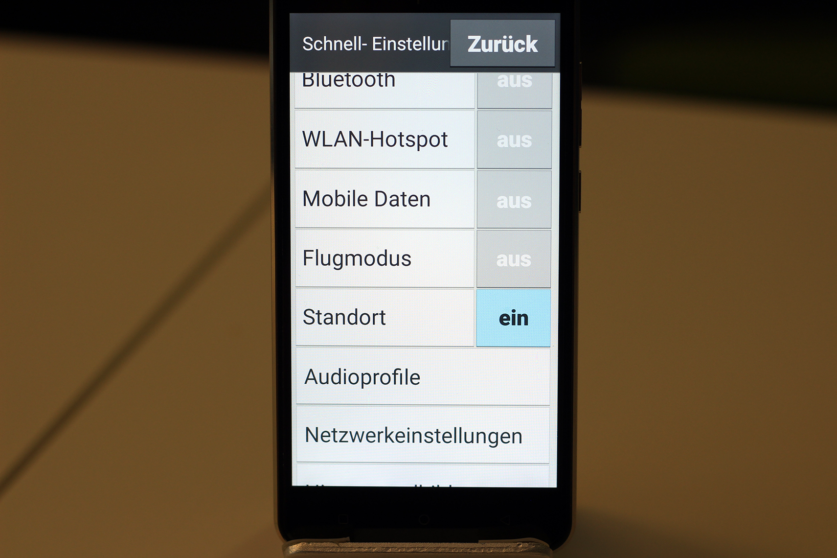 Das emporiaSMART.2 ist mit einem Fünf-Zoll-Touchdisplay ausgestattet, das in HD mit 1.280 x 720 Pixel auflöst. Das entspricht einer anständigen Bildschärfe von 293 Pixel pro Zoll, mit der Texte und Apps präzise dargestellt werden und die für Grundfunktionen wie Telefonieren oder das Schreiben von Nachrichten absolut ausreicht. Unterstützt wird die klare, übersichtliche Darstellung von einer im Vergleich zu herkömmlichen Smartphones großen Schrift und App-Symbolen. Durch die IPS-Technologie punktet der Bildschirm außerdem auch bei der Farb- und Kontrastwiedergabe in verschiedenen Helligkeitsstufen. Praktisch ist in diesem Zusammenhang auch die adaptive Helligkeitseinstellung, die die Displayhelligkeit automatisch an unterschiedliche Lichtverhältnisse anpasst und so beispielsweise auch bei Sonnenlicht die Ablesbarkeit ermöglicht. Ebenfalls überzeugen kann die Blickwinkelstabilität des Bildschirms, der sich selbst bei sehr schräger Haltung noch gut erkennen lässt. Bei starker Sonneneinstrahlung stellen sich allerdings sowohl in gerader als auch in geneigter Haltung Spiegelungseffekte ein, die die Lesbarkeit beeinträchtigen.