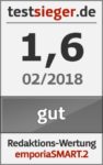 Das emporiaSMART.2 kann die Ansprüche eines Senioren-Smartphones in unserem Test beinahe rundum erfüllen und überzeugt vor allem mit seiner einfachen, benutzerfreundlichen Bedienung über das große, gut lesbare Display und der ausführlichen Anleitung inklusive Trainingsbuch. Für den Preis von rund 200 Euro bietet das Gerät außerdem eine ansprechende Optik und gute Ausstattung, die mit GPS und Notruffunktion sinnvoll auf die Zielgruppe abgestimmt wurde. Schwachpunkte des Geräts sind die Kamera und der fehlende Mediaplayer. Dennoch: Wer in die Smartphone-Welt einsteigen will, macht mit dem emporiaSMART.2 alles richtig und fühlt sich bestimmt nicht überfordert.