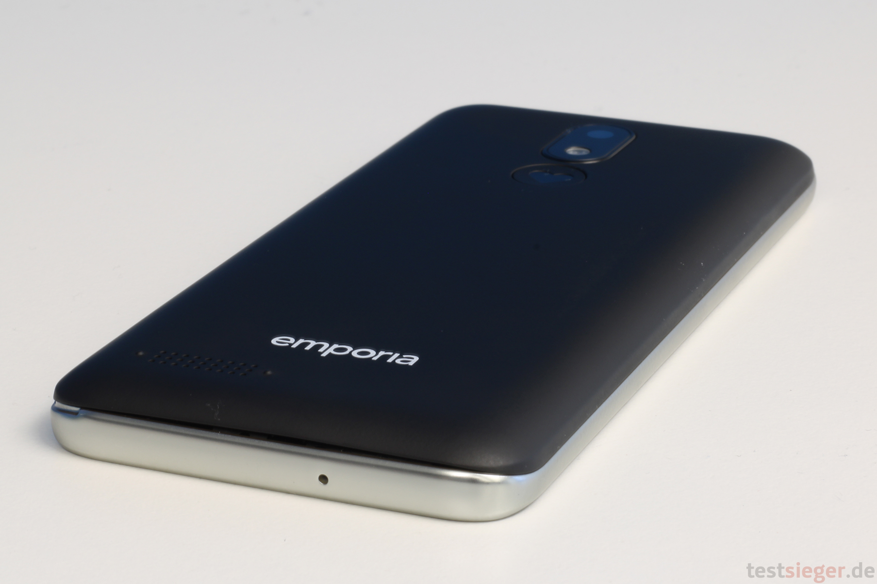 Im Inneren arbeitet ein Vierkern-Prozessor, der von 2 Gigabyte Arbeitsspeicher unterstützt wird. Damit ist direkt klar, dass wir es hier nicht mit einem Leistungsmonster zu tun haben. Für das Surfen im Netz und alltägliche Anwendungen wie Google Maps oder WhatsApp ist die Hardware aber ausreichend. Zumal die emporia-App auch nicht allzu ressourcenhungrig ist. Trotzdem starten Anwendungen recht gemächlich und brauchen auch mal ein paar Sekunden, bis sie sich komplett aufgebaut haben. Zum Spielen ist das Smartphone natürlich nicht geeignet, muss es in Anbetracht der Zielgruppe aber auch nicht sein. YouTube-Videos in 480p-Qualität laufen flüssig, mehr ist aufgrund der Auflösungslimitierung auch gar nicht möglich. Der interne Speicher ist mit 16 Gigabyte schmal ausgefallen, lässt sich über eine MicroSD-Karte aber noch einmal um bis zu 64 Gigabyte erweitern. Der SD-Kartenschacht befindet sich wie der MicroSIM-Slot unter der abnehmbaren Abdeckung.