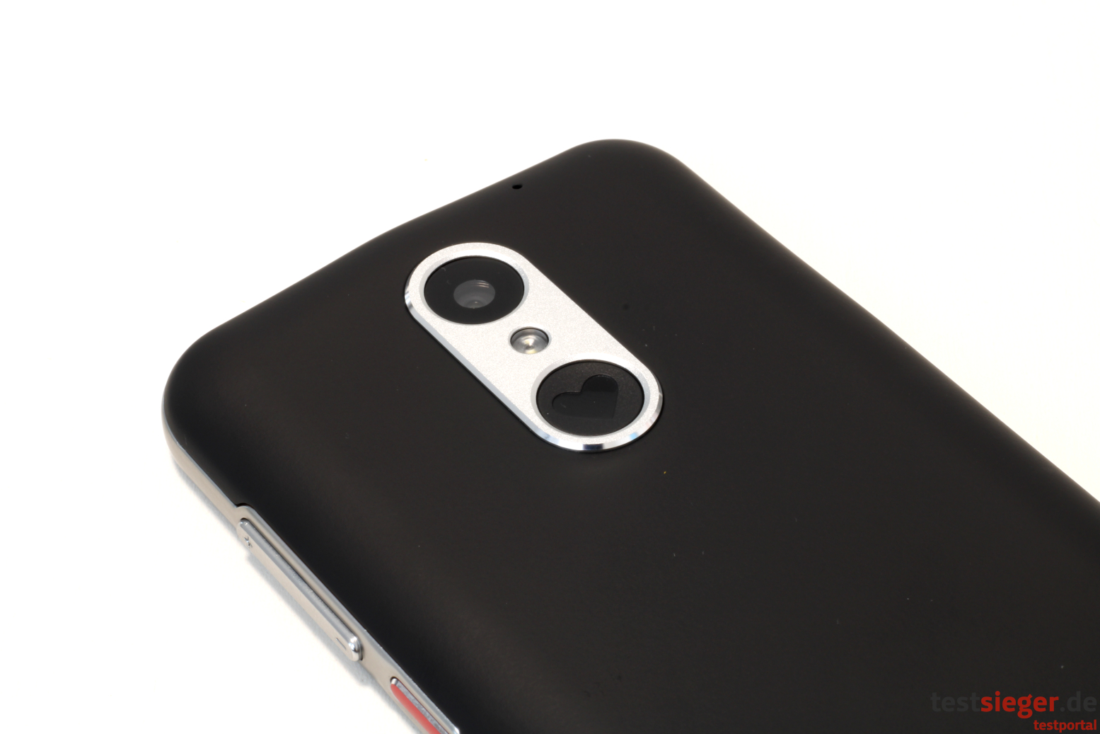 Die Verarbeitungsqualität liegt insgesamt in einem guten Bereich. Die Rückseite ist abnehmbar, hält jedoch fest und schließt recht bündig mit dem restlichen Gehäuse ab. Auffällig große Spaltmaße entdecken wir hier dementsprechend nicht. Die Front mitsamt Display ist sauber in den Metallrahmen eingelassen. Sehr schön: Das emporiaSMART.4 ist insgesamt sehr stabil und lässt sich auch bei starker Druckausübung so gut wie nicht verbiegen. Somit muss der Nutzer keine Schäden beim Transport in der Hosentasche befürchten. Wie bereits beim Vorgänger freuen sich Käufer über die IP54-Zertifizierung, die vor Staub und Spritzwasser schützt.