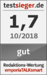 Das emporiaTALKsmart überzeugt im Test durch eine gute Signalqualität. Bei allen Testanrufen konnten wir keine Verbindungsabbrüche feststellen. Die Sprachqualität macht ebenfalls einen ordentlichen Eindruck. Der Gesprächspartner ist zu jeder Zeit gut zu verstehen und es treten keine gravierenden Störgeräusche auf. Eine Freisprechfunktion ist vorhanden, dann nimmt jedoch die Sprachqualität – vor allem bei hoher Lautstärke – merklich ab und der Gegenüber ist nur noch schwer zu verstehen. In puncto Mobilfunkstandards unterstützt das Seniorenhandy GSM, UMTS und LTE. Auch bei der Nutzung der mobilen Daten konnten wir keine größeren Probleme feststellen. Wer WhatsApp verwenden möchte, kann das Handy auch per WLAN in das heimische Netzwerk integrieren.