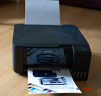Die harten Fakten im Alltag beim Drucken, Scannen und Kopieren können sich sehen lassen. Laut Herstellerangaben soll der ET-2720 bis zu 15 A4-Seiten in Farbe und bis zu 33 Seiten Schwarz/Weiß pro Minute in Abhängigkeit von der Papierart und der Qualitätseinstellung drucken. Diese Werte erreichen wir jedoch höchstens in der Einstellung Schnell mit Normalpapier. In Standardqualität müssen wir zum Teil deutlich mehr Zeit investieren, was nicht ungewöhnlich ist, da die Herstellerangaben in der Regel kaum erreichbar sind. Für unseren Test verwenden wir eine Broschüre des Herstellers zur EcoTank-Serie (16 Seiten) als Vorlage. Hierfür drucken wir die Broschüre in unterschiedlichen Einstellungen. Das gedruckte Dokument besteht dabei aus Text sowie Grafiken, sodass wir eine möglichst umfassende Aussage über die Druckgeschwindigkeit und die Qualität treffen können.