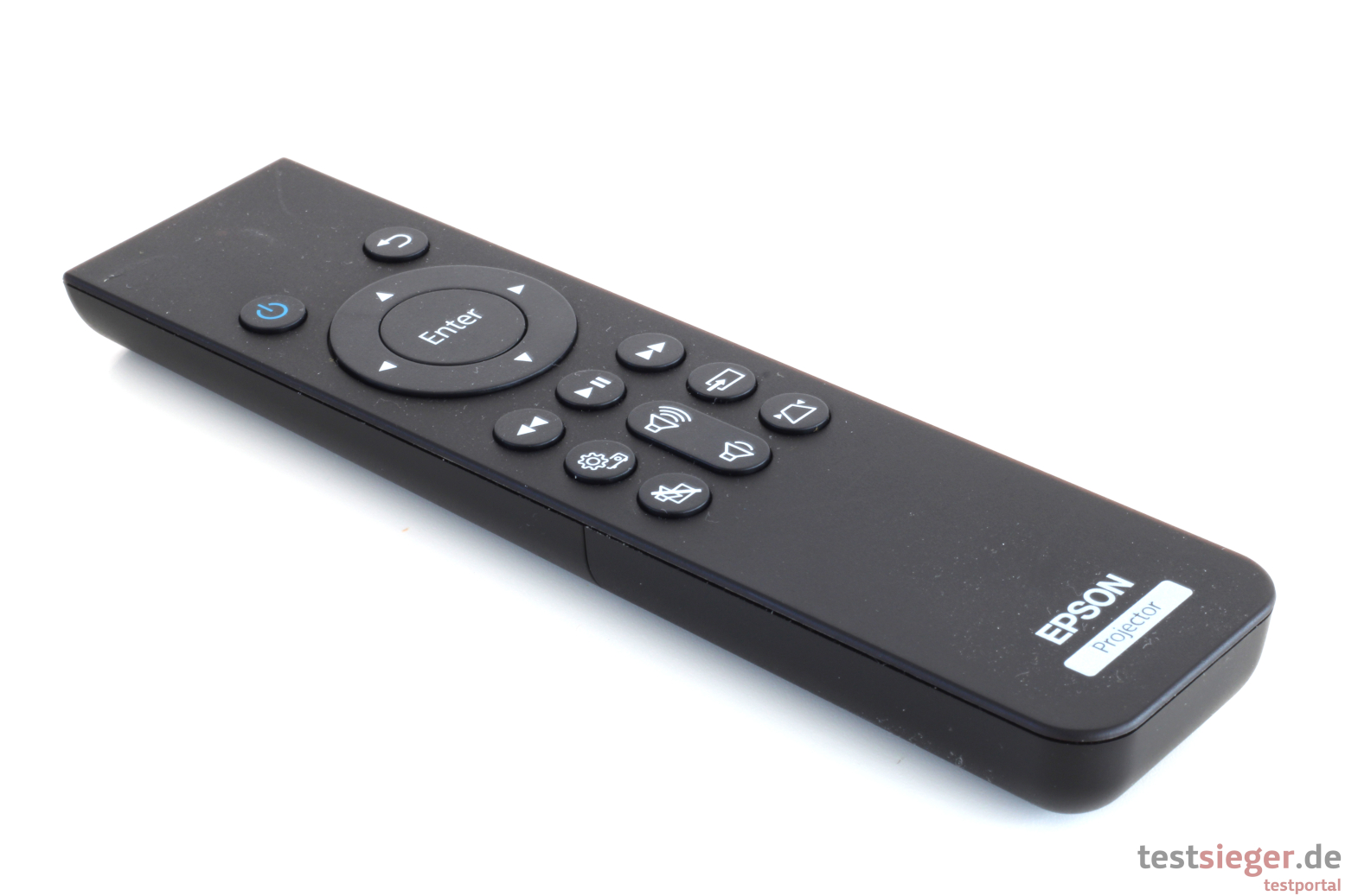 Die Fernbedienung liegt gut in der Hand, alle Knöpfe haben einen angenehmen Druckpunkt und reagieren zügig. Über die entsprechende Taste ruft der Nutzer das Einstellungsmenü auf, wo er unter anderem das Bild nach seinen Wünschen anpasst. Aber auch die Keystone-Korrektur oder die Quellenwahl erfolgt über den Schalter. Apropos Quellen: Der Epson EF-11 unterstützt HDMI 1.4, USB-TypA und Miracast. Alle Schnittstellen befinden sich auf der rechten Seite. Daneben findet sich noch ein 3,5-mm-Klinkensteckereingang, um kabelgebundene Kopfhörer oder Lautsprecher zu verbinden. Per Miracast lassen sich Inhalte beispielsweise vom Smartphone kabellos an den Projektor spiegeln. WLAN oder Bluetooth spart sich der Hersteller. In puncto Dateiformate gibt sich der Projektor ebenfalls wählerisch, so unterstützt er beispielsweise keine PDF-Dokumente, was gerade bei Präsentationen hilfreich wäre.