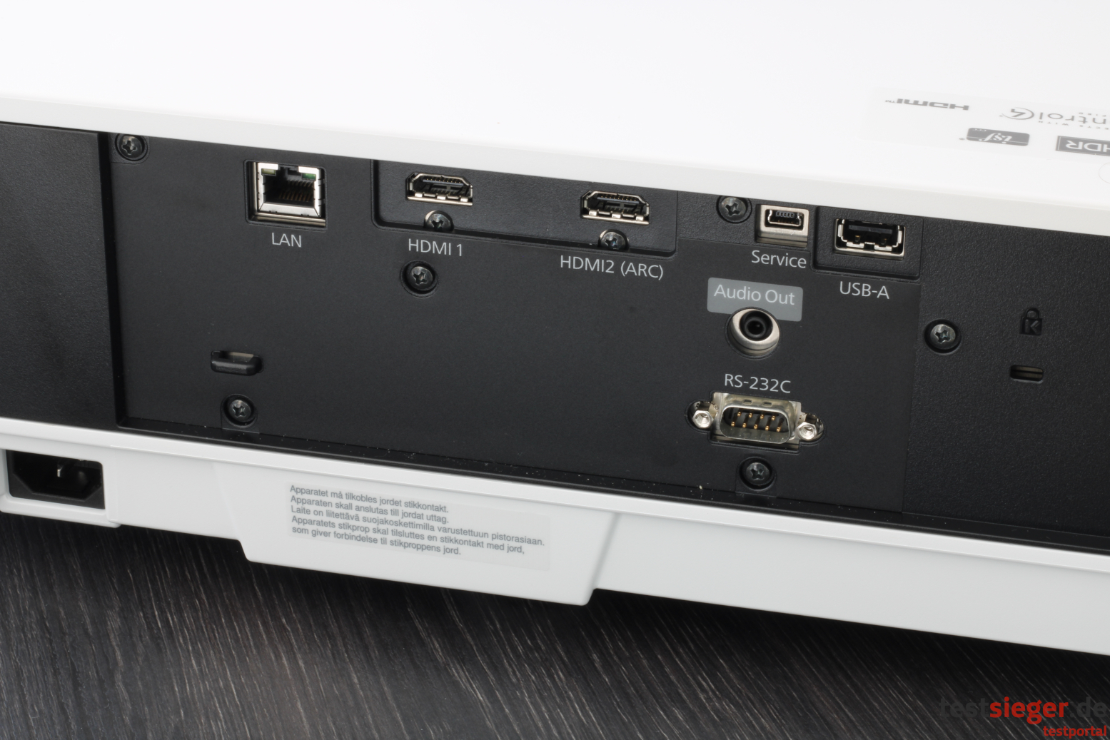 Der EH-LS500W ist sicherlich kein Flüsterer. Direkt neben dem Gerät messen wir einen Pegel von 53 Dezibel (dBa). Da die meisten Nutzer jedoch ein gutes Stück entfernt sitzen dürften, relativiert sich der Wert. Trotzdem ist der Projektor gerade bei ruhigen Szenen gut hörbar. Im Eco-Modus reduziert sich die Geräuschemission auf angenehmere 49 Dezibel. Der Epson punktet dabei durch ein gutes Temperatur-Management. Das Gehäuse erwärmt sich zwar leicht, bedenklichen Werten sind wir aber noch sehr weit entfernt. Selbst bei voller Helligkeit geht der Epson sehr moderat mit Strom um. Nach einer Filmsession mit 120 Minuten bei voller Helligkeit liegt der Verbrauch bei 0,5 kWh. Ein guter Wert, der bei der hohen Leuchtkraft nicht verwundert.