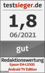 Wem Fernseher unter 80 Zoll zu klein sind, der findet mit dem Epson EH-LS500 eine gute Alternative zu einem deutlich erschwinglicheren Preis (UVP: 3.499 Euro). Die Einrichtung klappt insgesamt gut und auch die Bedienung geht nach einer Eingewöhnungsphase in Fleisch und Blut über. Allerdings hätten wir die Android-TV-Fernbedienung nicht gebraucht, da sie eher verwirrt. Das Bild punktet vor allem durch die hohe Helligkeit und scharfe Darstellung. Beim Kontrast ist noch etwas Luft nach oben. Ein Nachteil im Gegensatz zu einem herkömmlichen TV-Gerät ist jedoch die deutlich höhere Lautstärke.