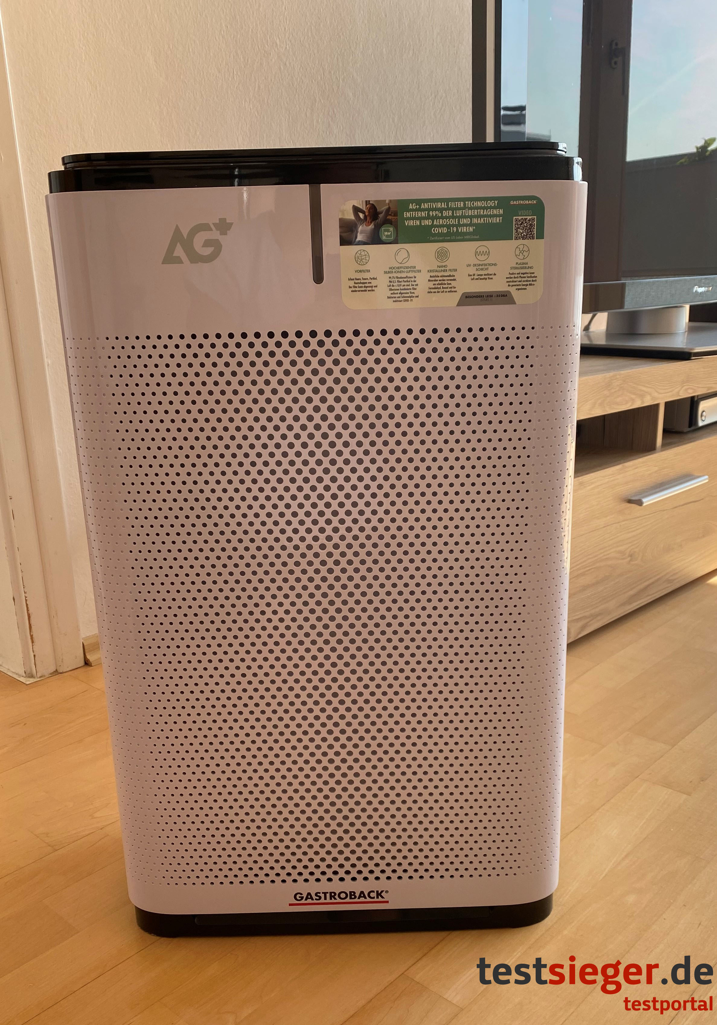Im Test überzeugt uns der Gastroback Luftreiniger AG+ Airprotect. Besonders begeistert sind wir von der Virenbekämpfungsfunktion. Hat der Luftreiniger einmal seinen festen Platz im Haushalt gefunden, leistet er einen hervorragenden Dienst. Selbst große Räume sind für den Gastroback Luftreiniger kein Problem. Ein Manko sehen wir jedoch in der hohen Lautstärke der Geschwindigkeitsstufen zwei und drei. Das ändert aber nichts daran, dass wir eine Kaufempfehlung aussprechen.