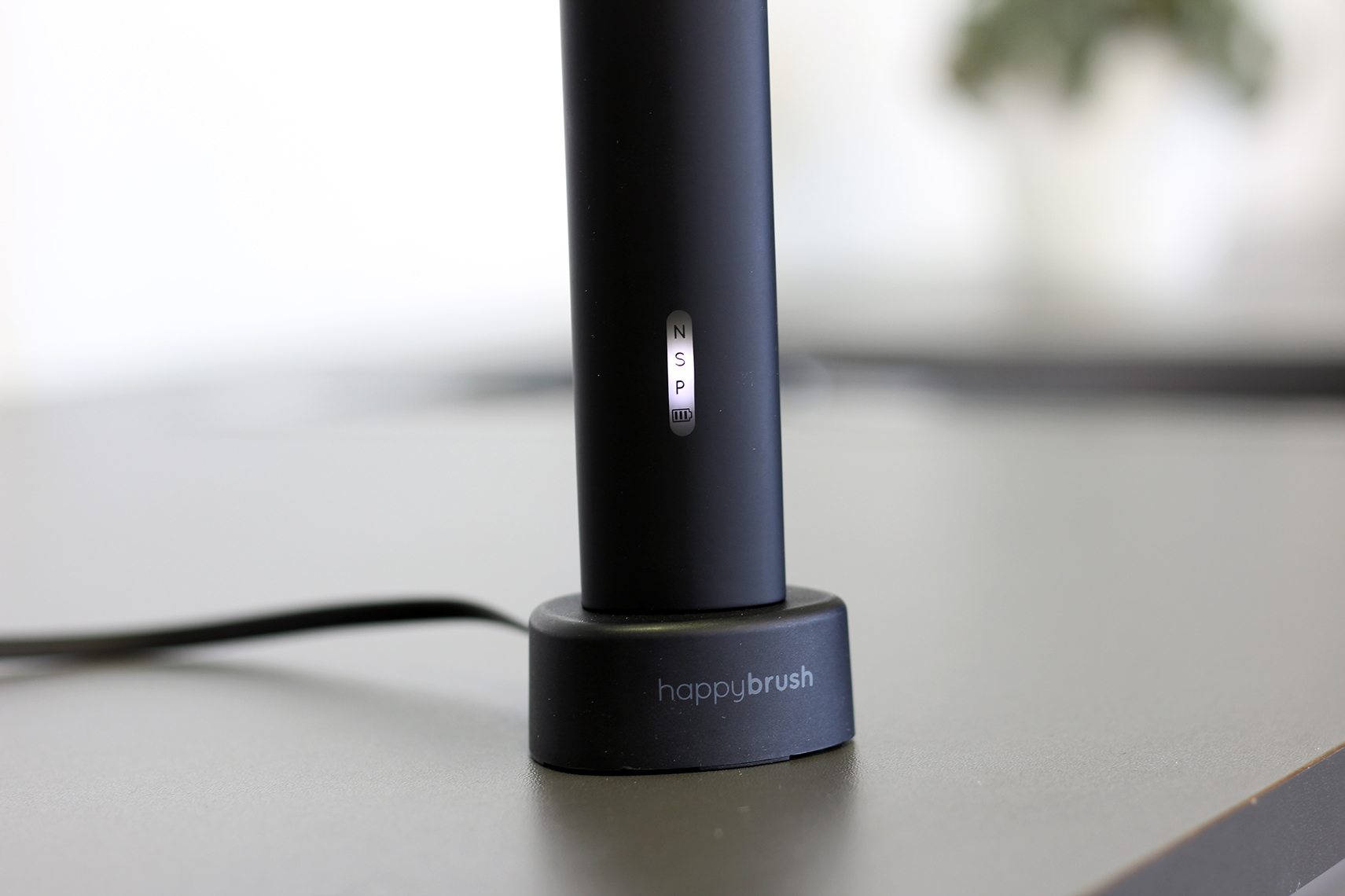 Die happybrush verfügt über drei unterschiedliche Putzmodi. Im Normal-Modus rotiert sie laut Hersteller 8.800 mal pro Minute und damit schneller als das Vorgängermodell. Im Sensitiv-Modus sind es dagegen nur 6.500 Umdrehungen in der Minute und beim Polieren 7.000 – 8.000 mal. Weil es nur eine Taste am Gerät gibt, muss der Nutzer die verschiedenen Varianten nacheinander durchschalten. Da die Powertaste durch einen angenehmen Druckpunkt überzeugt und angenehm groß bemessen ist, ist das kein Problem. Durch eine längere Betätigung des Startknopfes lässt sich der Reisemodus aktivieren und die Taste ist gesperrt. Dank IPX7-Zertifizierung scheut die happybrush auch den längeren Kontakt mit Wasser nicht.